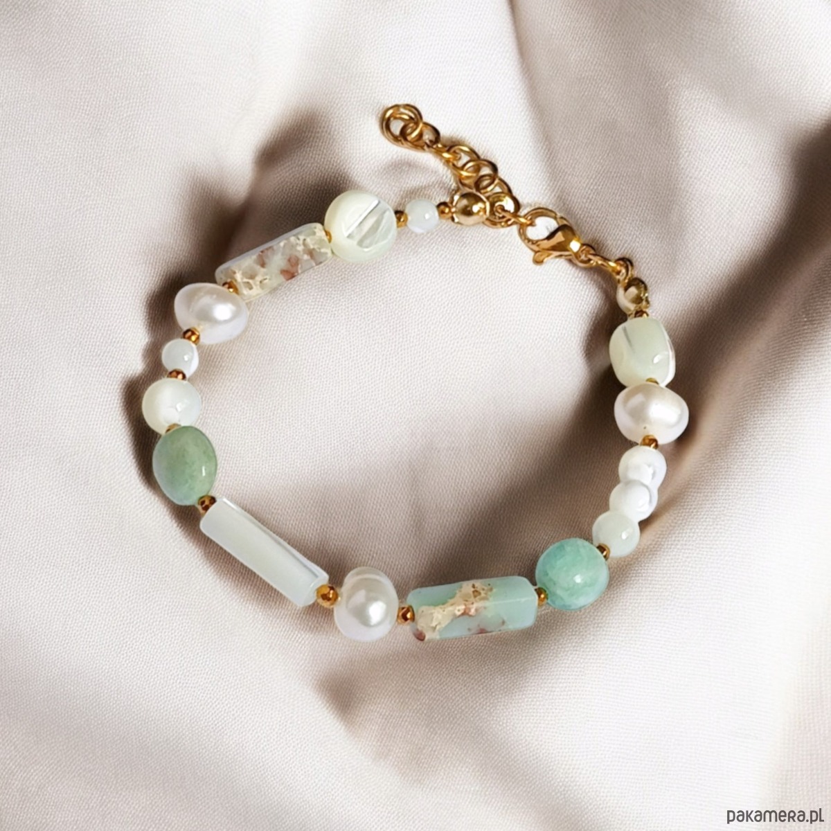 Bransoletka : perły , muszla, amazonit, jaspis cesarski :: light