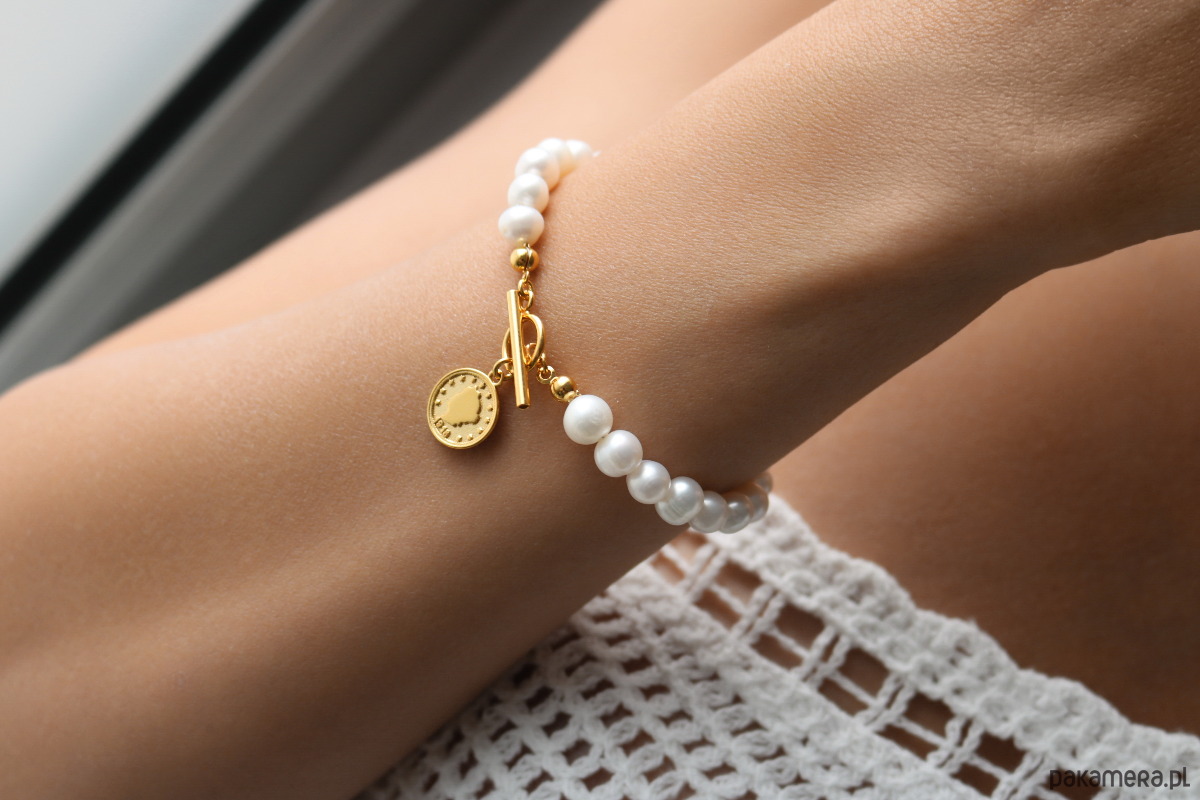 Bransoletka perły naturalne moneta srebro 925 pozłacane