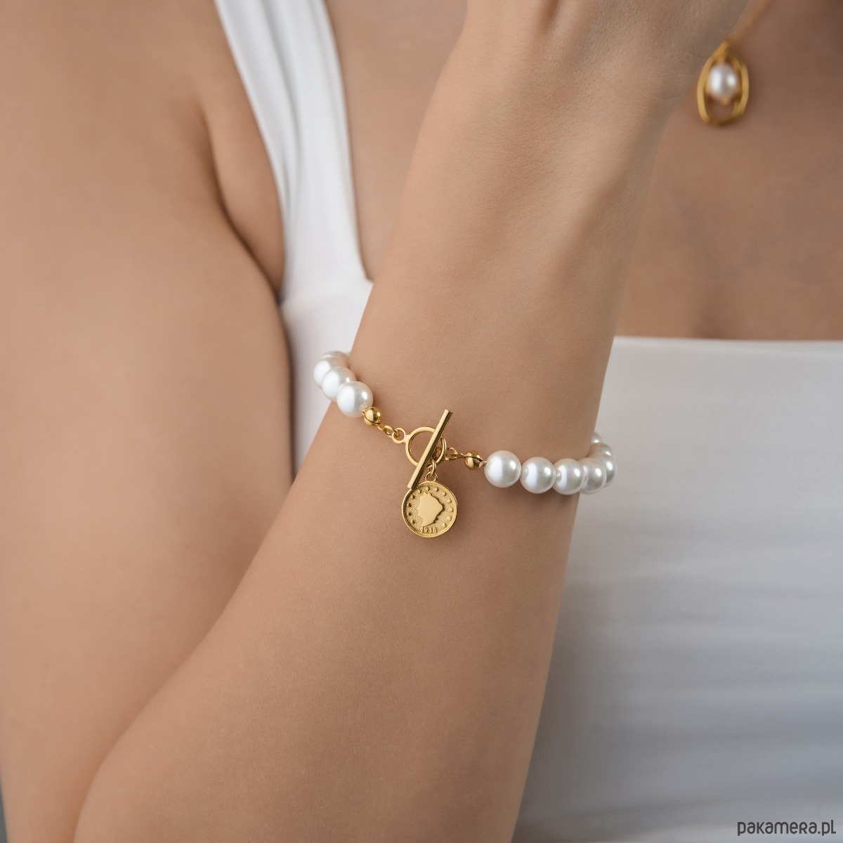 Bransoletka perły ozdobne zapięcie srebro 925 pozłacane
