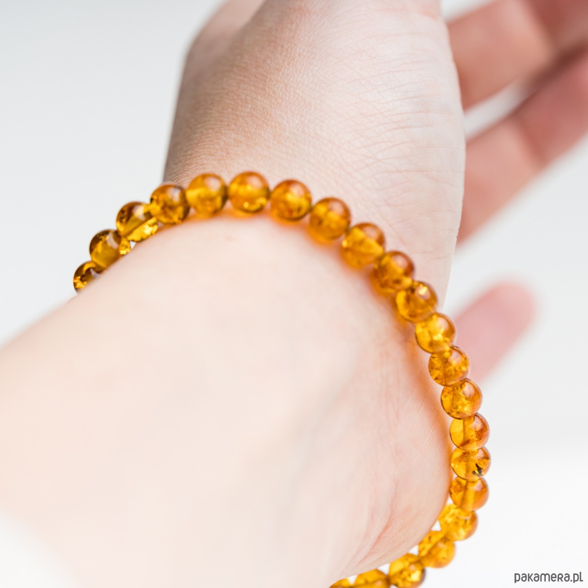 Elegancka bransoletka wykonana z naturalnego bursztynu bałtyckiego o regularnym kształcie kulki 6 mm. Klasyczny koniakowy odcień bursztynu pięknie mieni się w świetle, podkreślając naturalne inkluzje i wyjątkowy charakter każdego koralika.