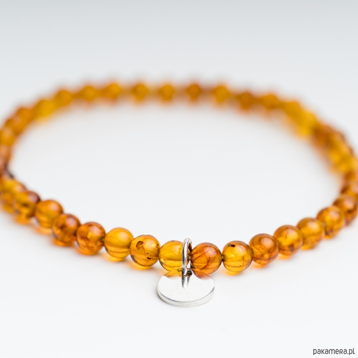 Bransoletka personalizowana z bursztynu bałtyckiego – kulka 6 mm, 20 cm