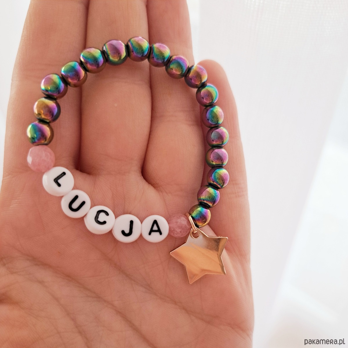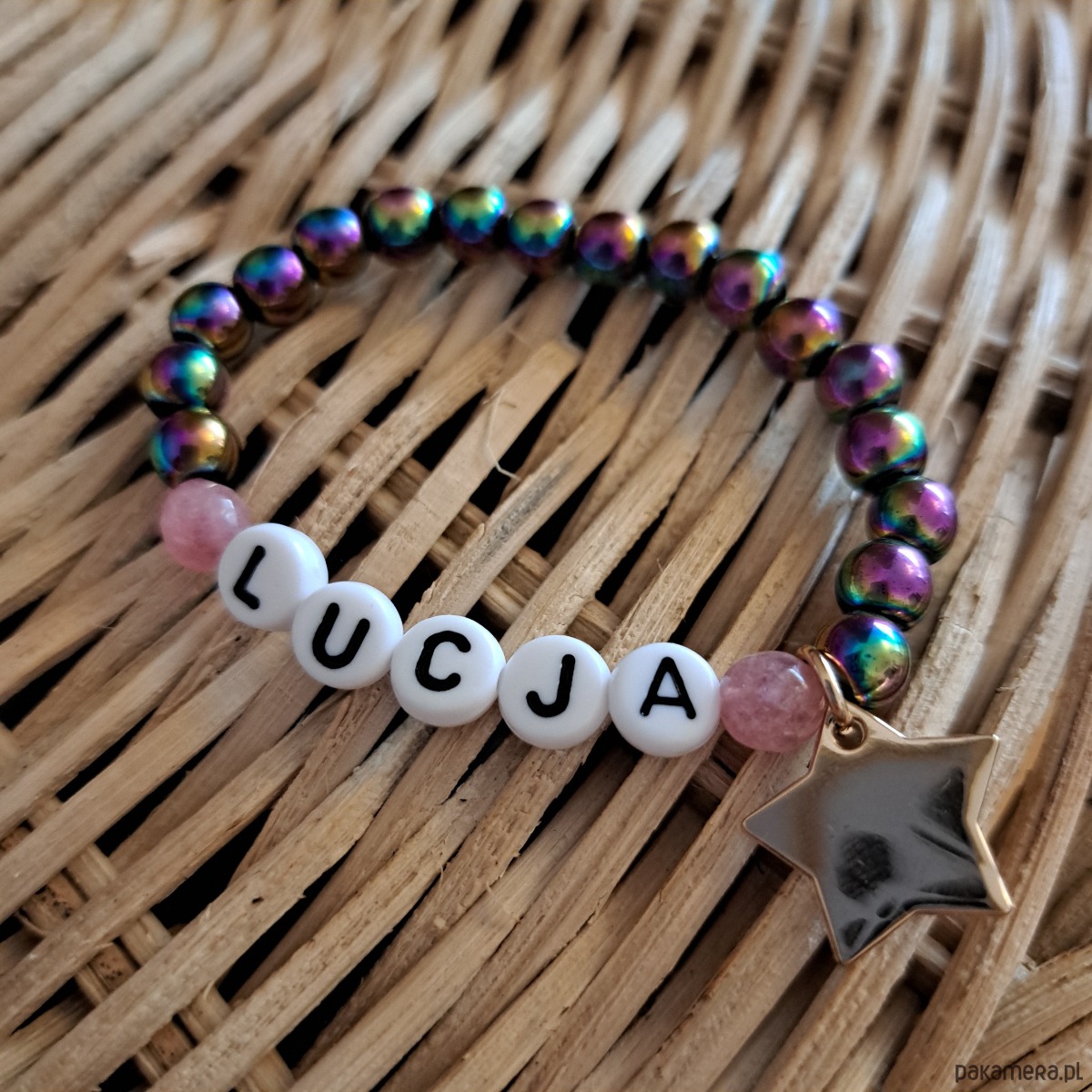 Bransoletka personalizowana z imieniem lub innym napisem.
