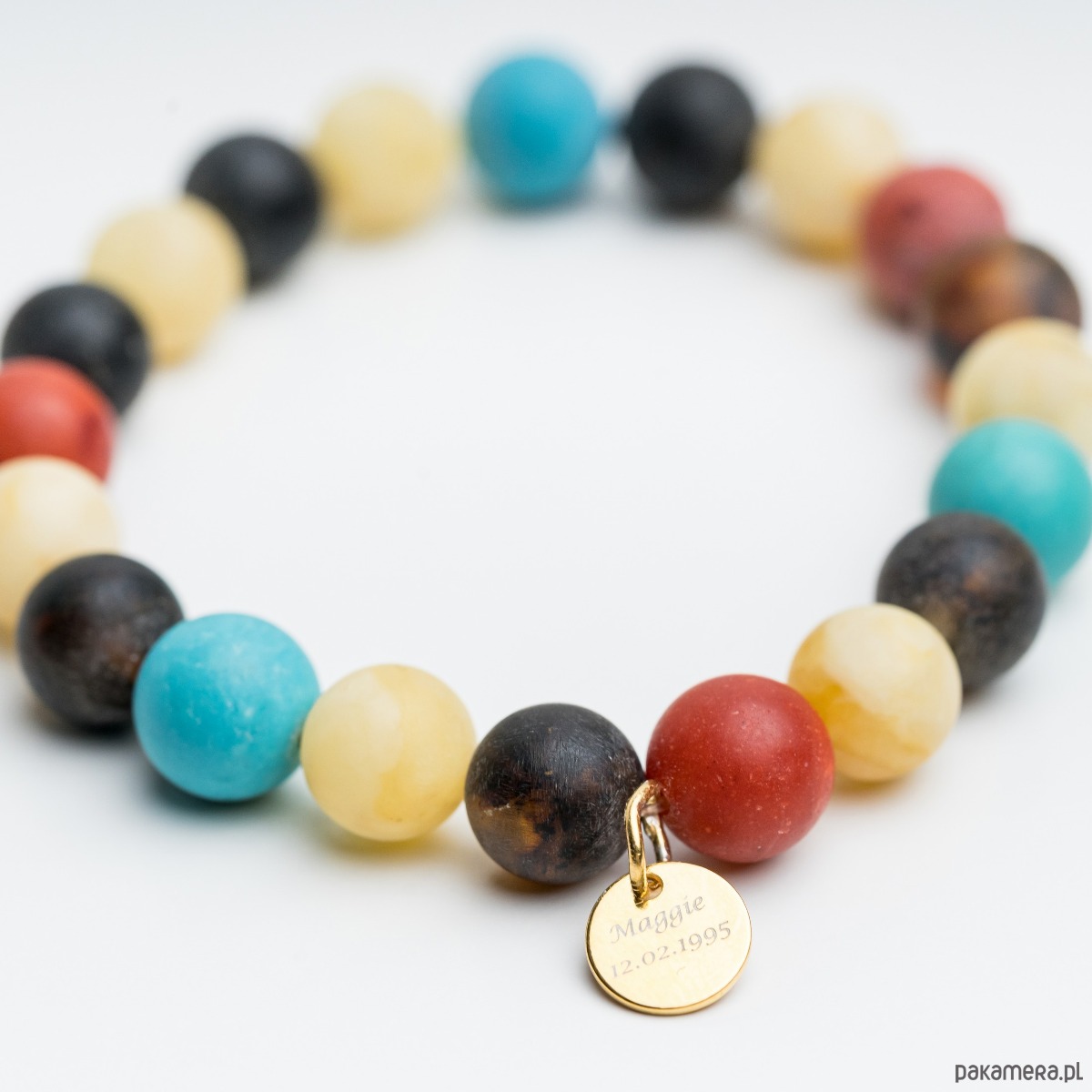 Bransoletka PERSONALIZOWANA z bursztynu, turkusu, koral