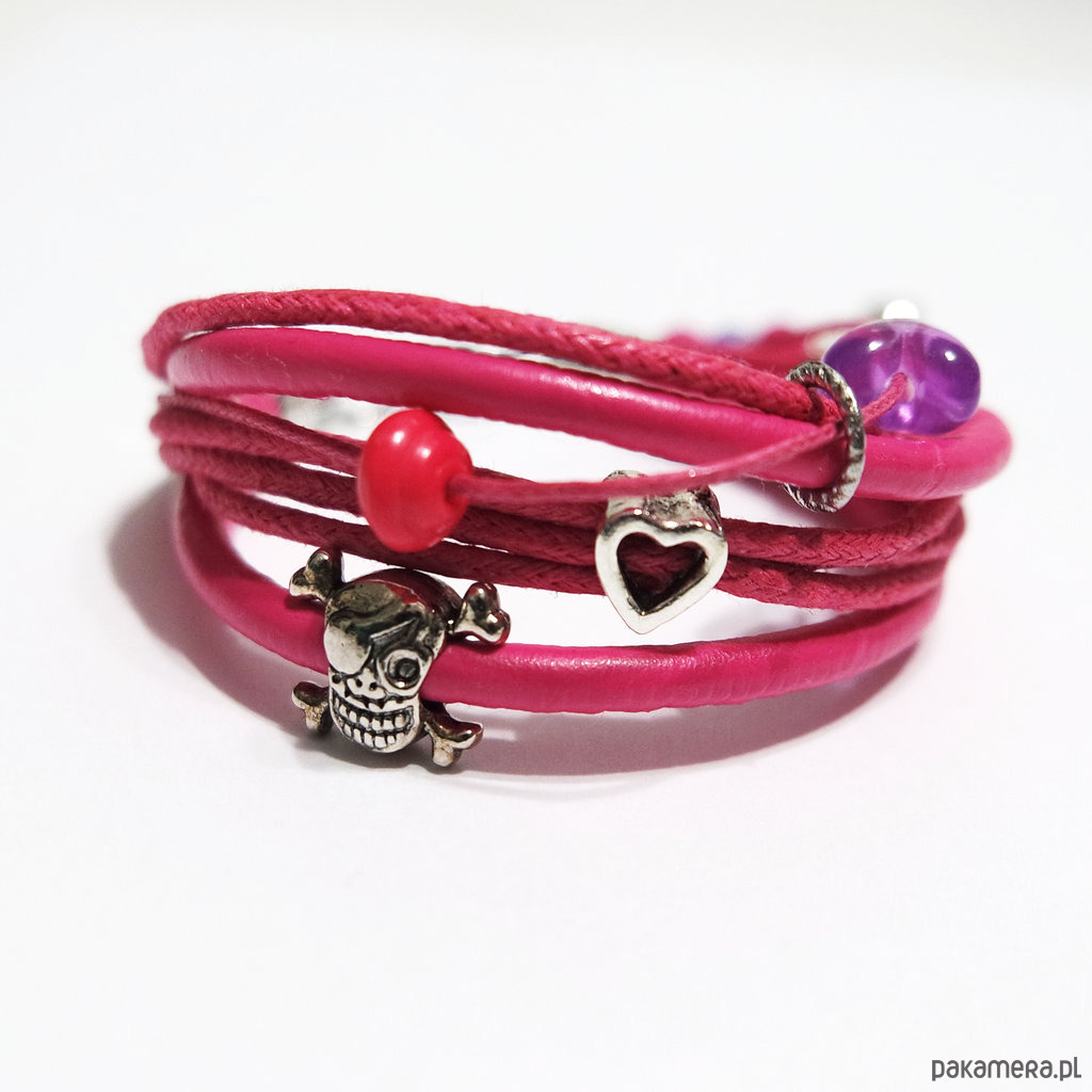 Bransoletka - Pink czaszka, pirat - różowa