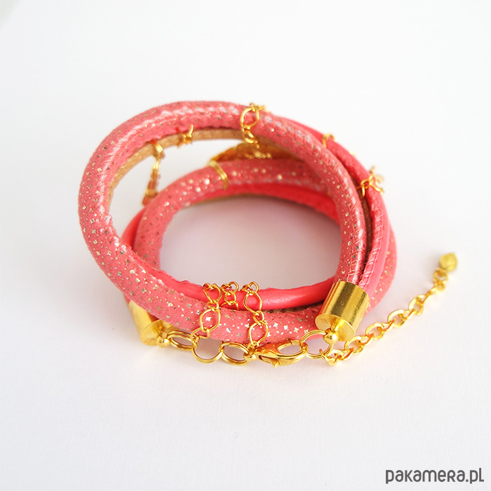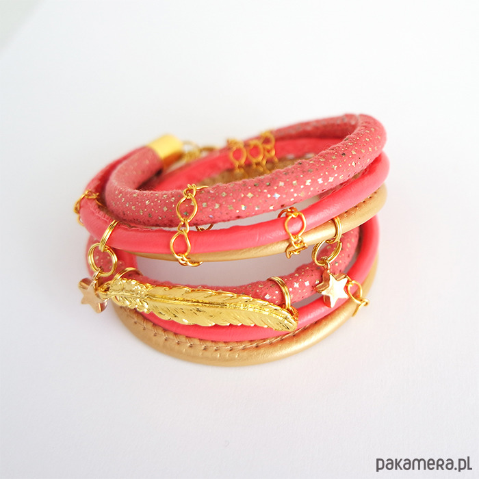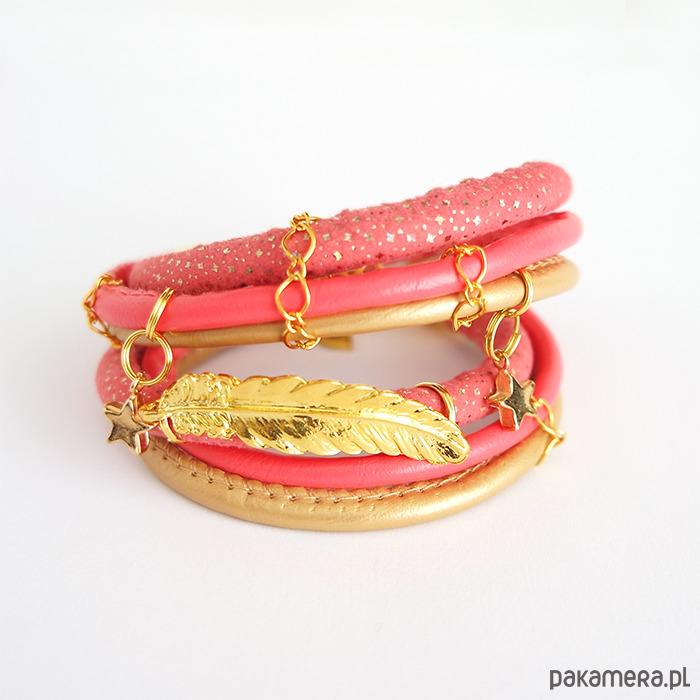 Bransoletka - Piórko, owijana - złota, różowa