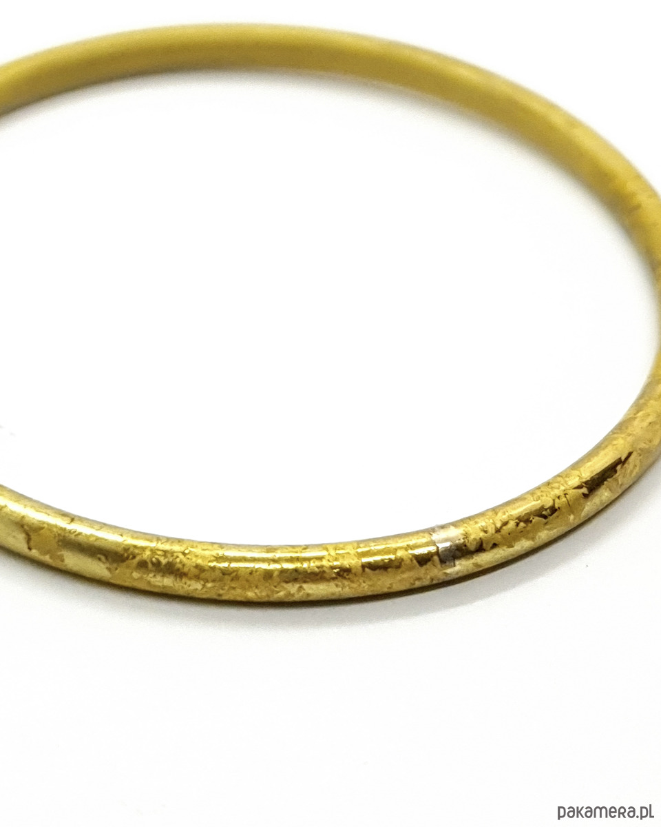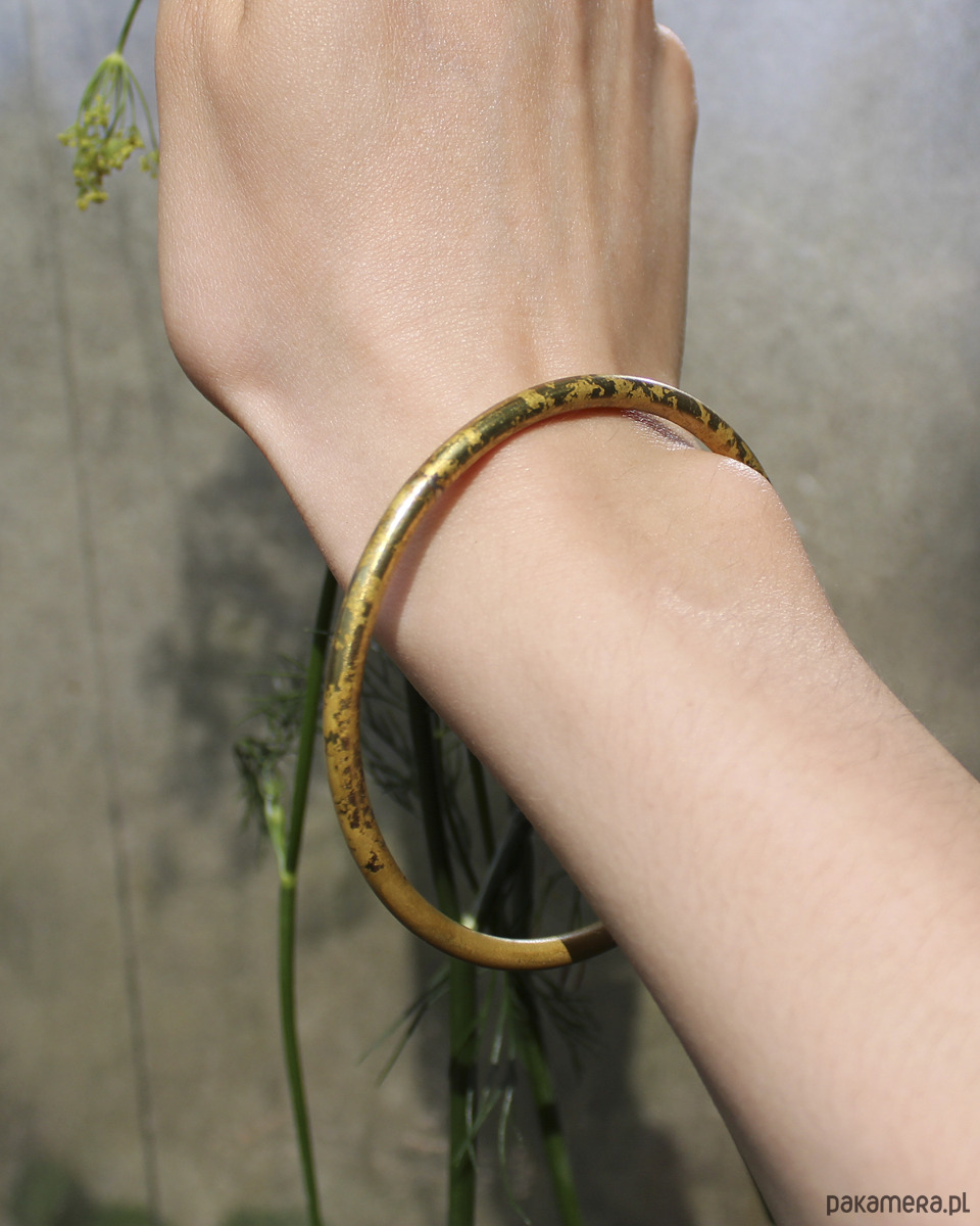 Minimalistyczna bransoletka koło z wytrawionym autorskim wzorem. Trawiona powierzchnia ma subtelne proszkowe wykończenie, a wzory nietrawione pozostają błyszczące. Idealna do zwiewnych, letnich sukienek lub prostych koszul.