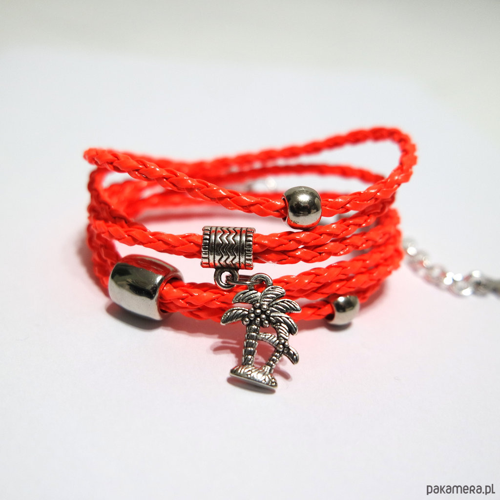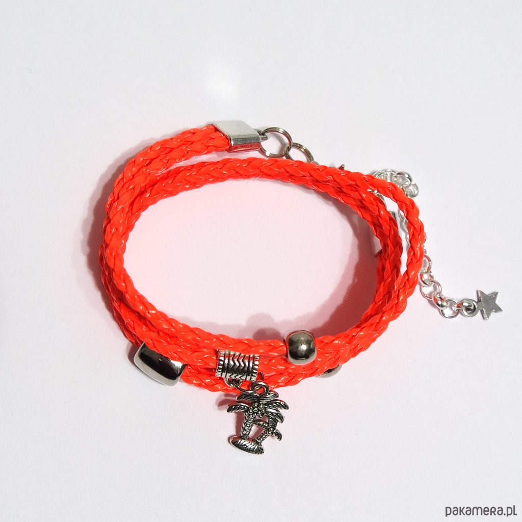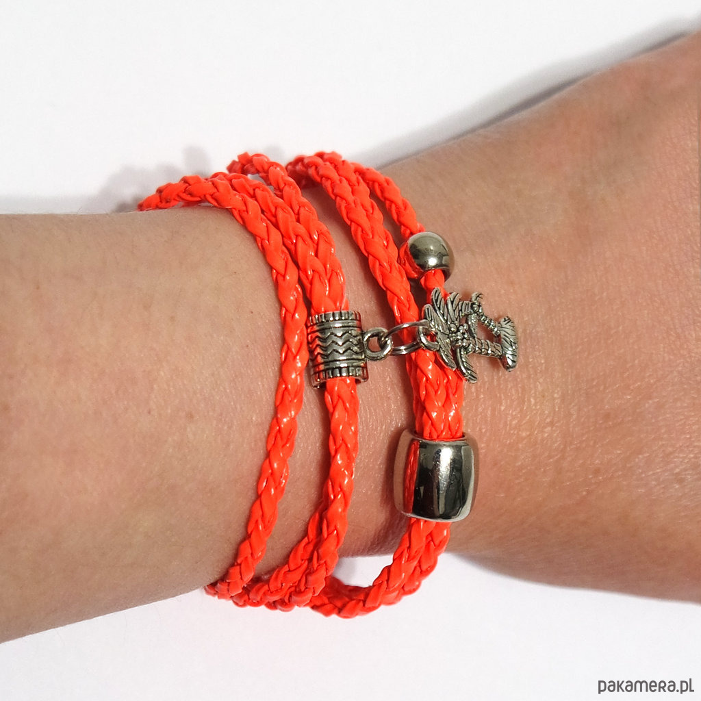 Bransoletka - Pomarańczowa, neonowa palma - owijana