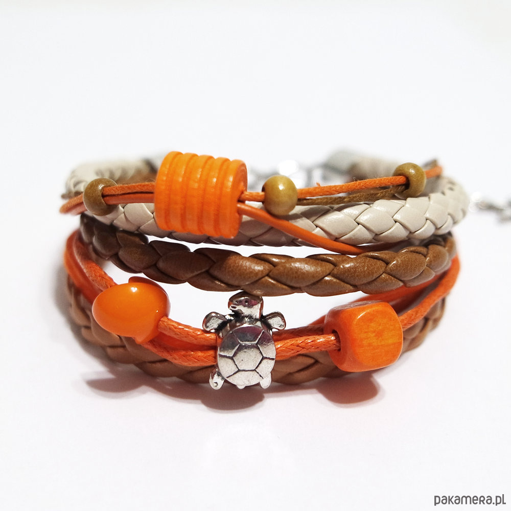 Bransoletka - Pomarańczowy żółwik - rzemienie