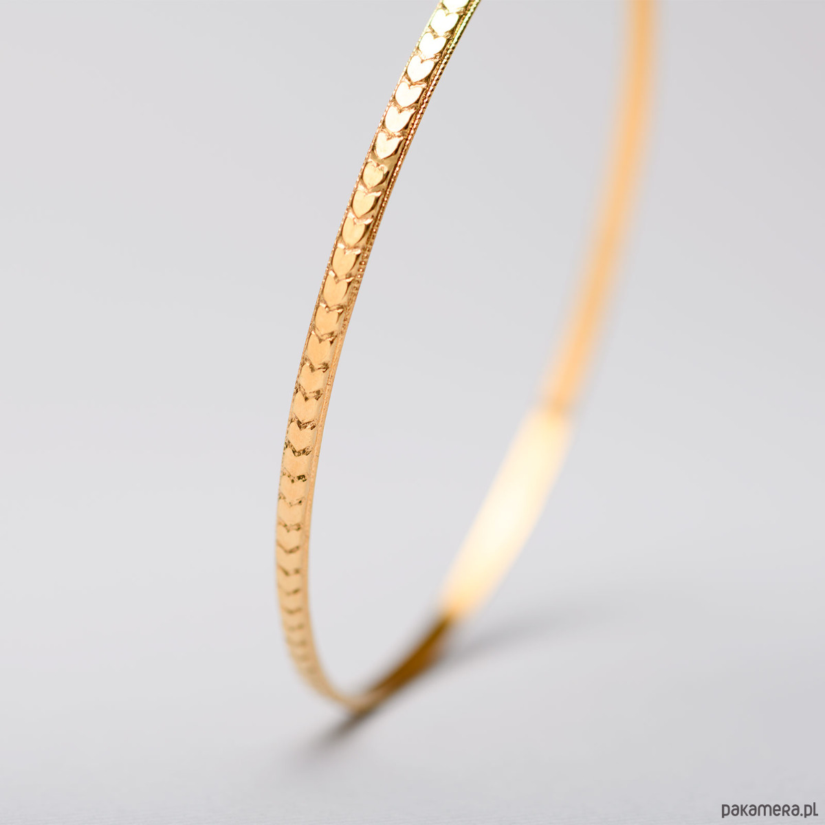 Bransoletka w małe serduszka z ozdobną plecionką na obwodzie kółka. Wykonana ze srebra próby 925, pokryta warstwą 24k złota Przepiękna, delikatna ozdoba na lata wykonana ze srebra.