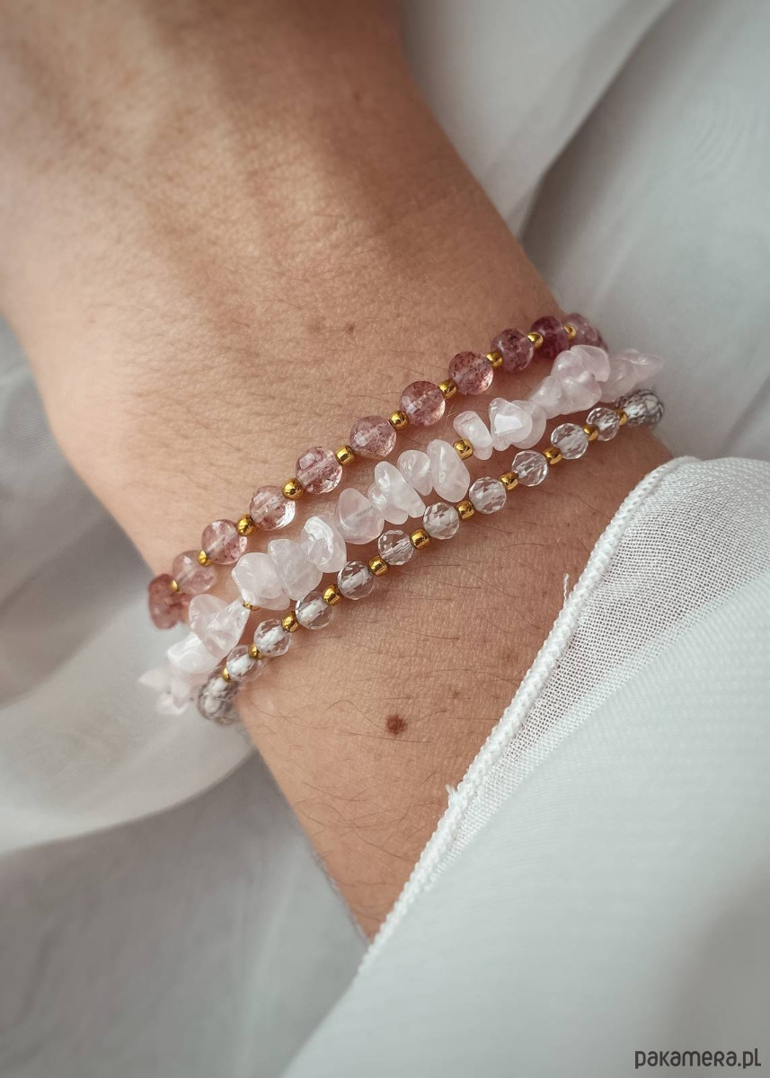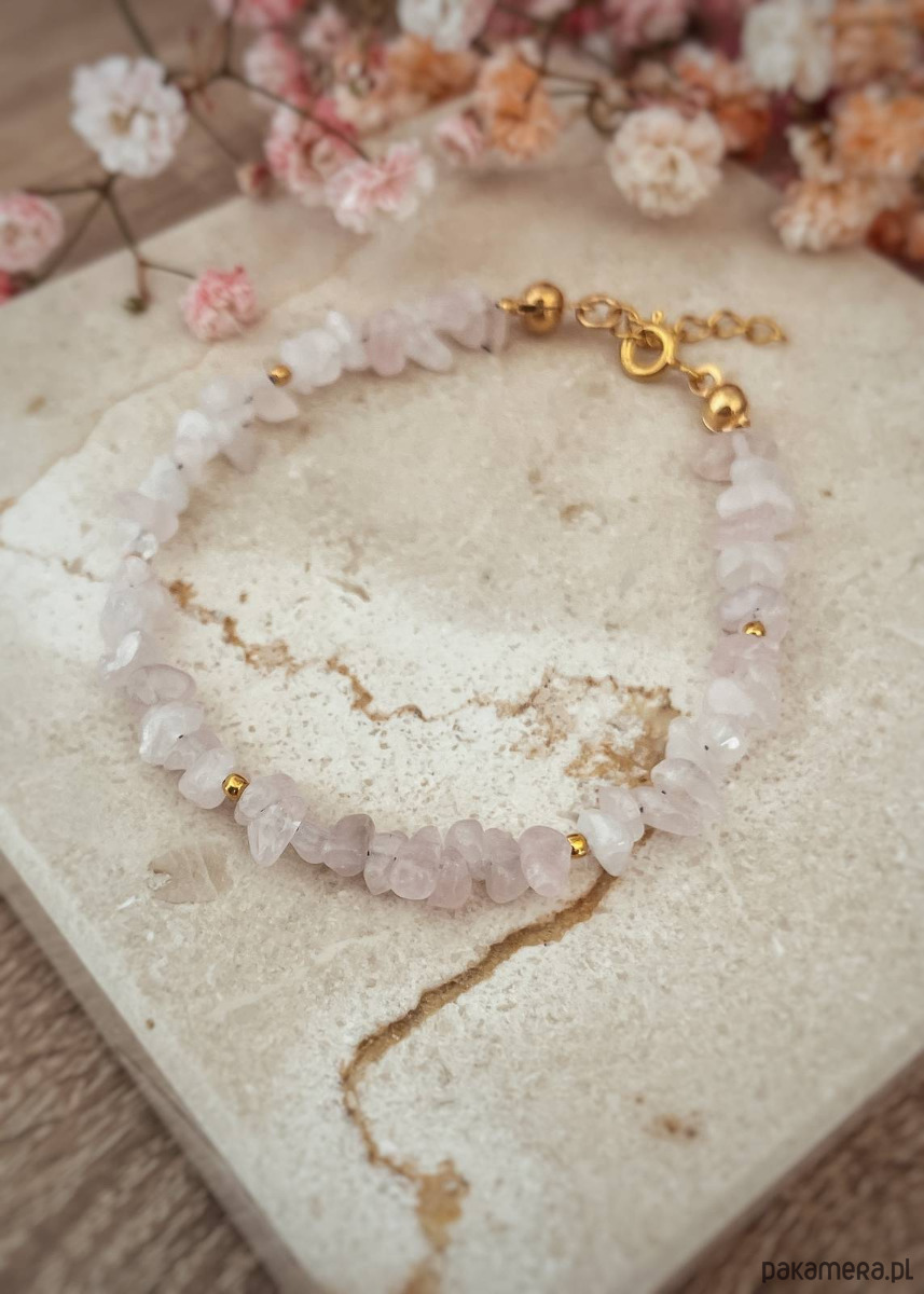 Bransoletka pozłacana z kamieni naturalnych Kwarc Różowy sieczka