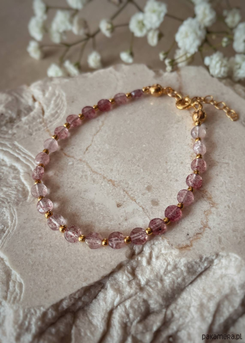 Bransoletka pozłacana z kamieni naturalnych Kwarc Truskawkowy