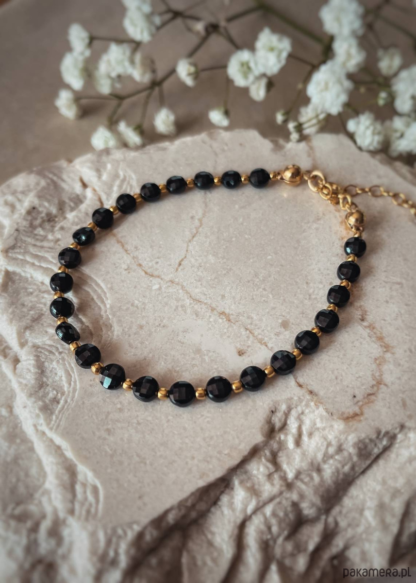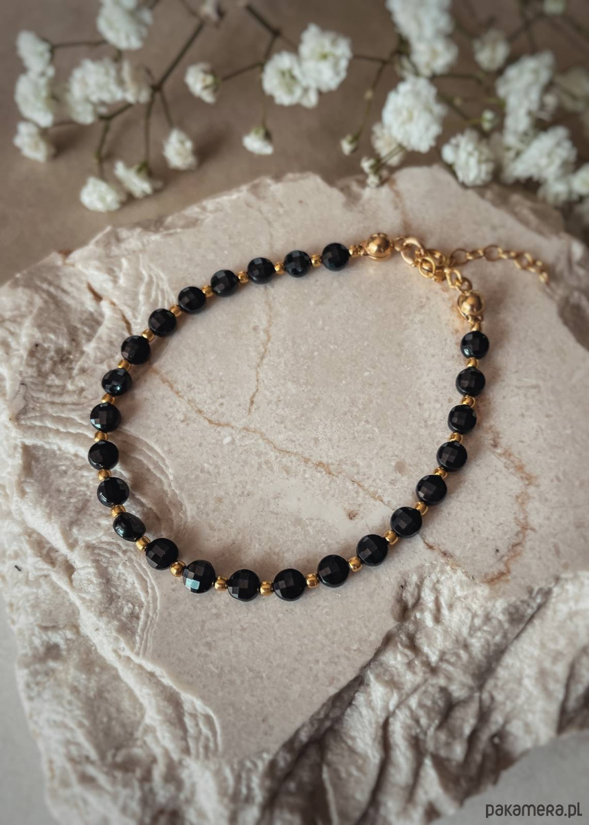 Bransoletka na zapięcie z kamieni naturalnych, Spineli w kolorze głębokiej czerni.