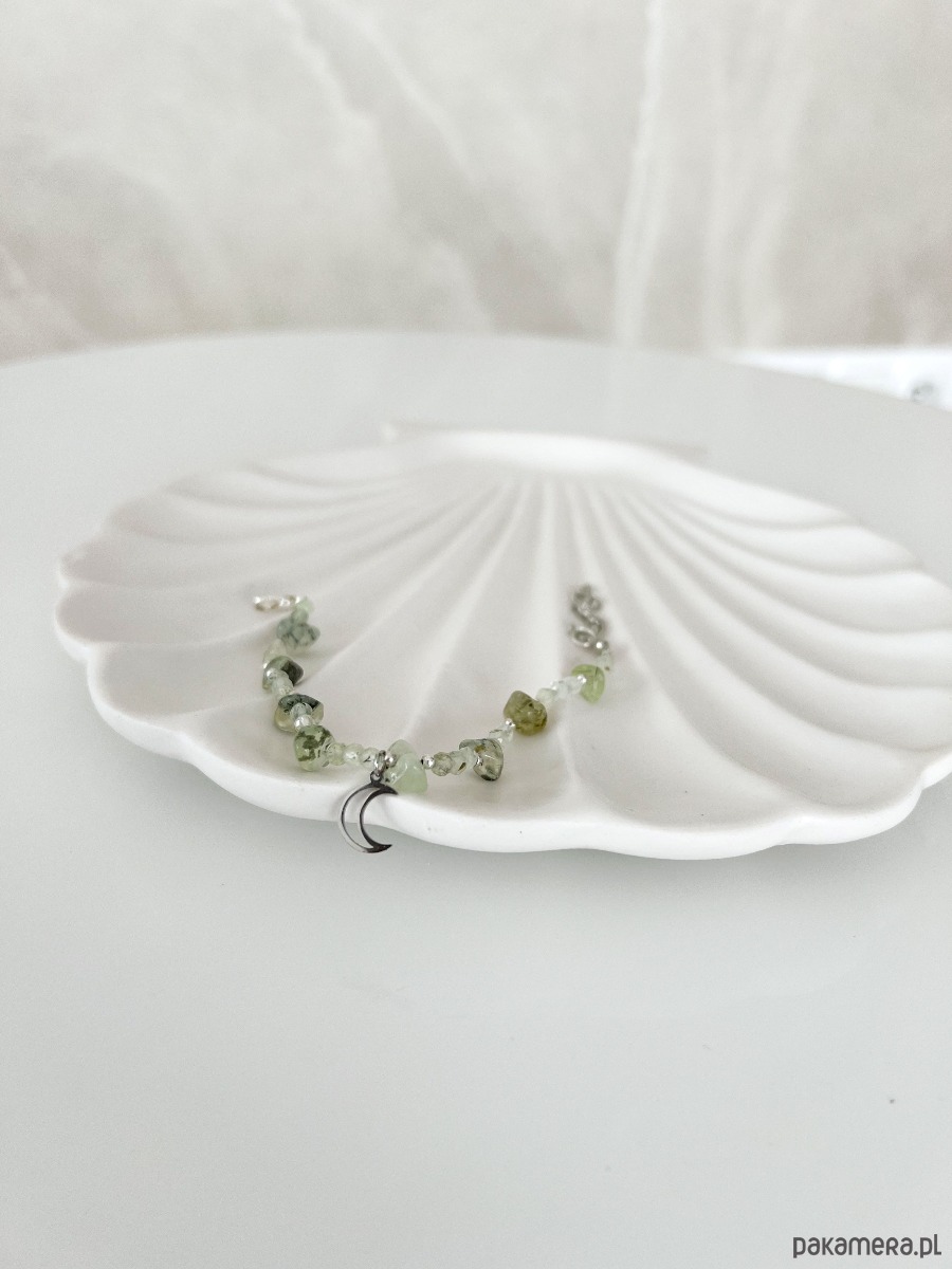 Bransoletka ręcznie wykonana z kamieni naturalnych - prehnitu (małe koraliki oraz większe o nieregularnym kształcie).