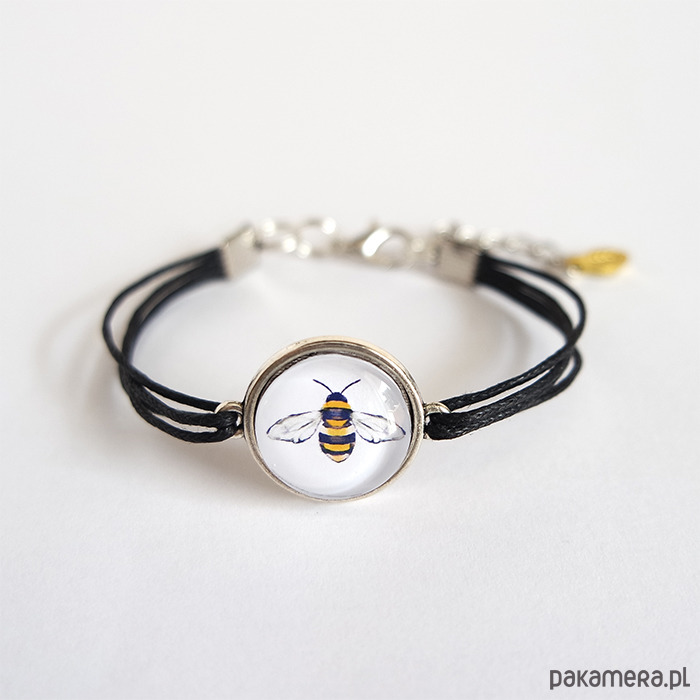 Bransoletka - Pszczoła - czarna, sznurki