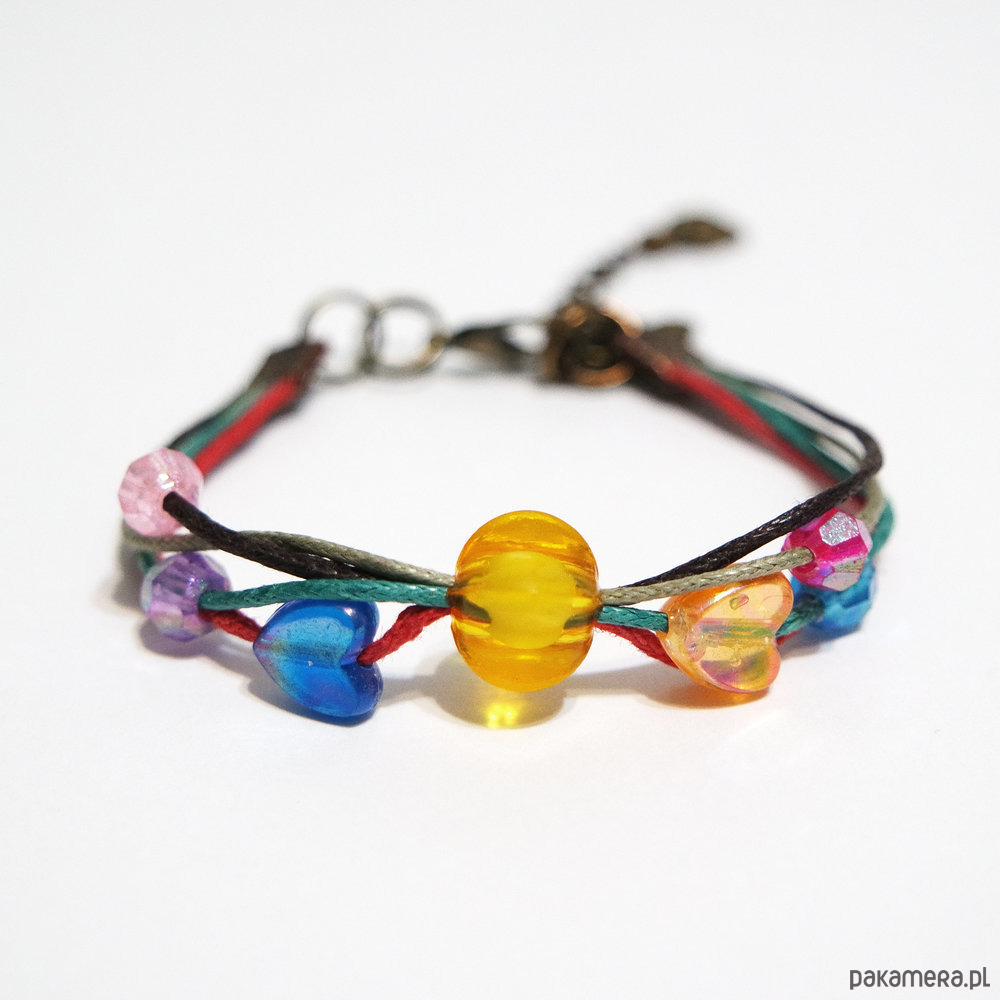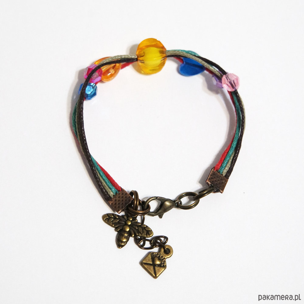 Bransoletka wykonana jest z woskowanych sznureczków.