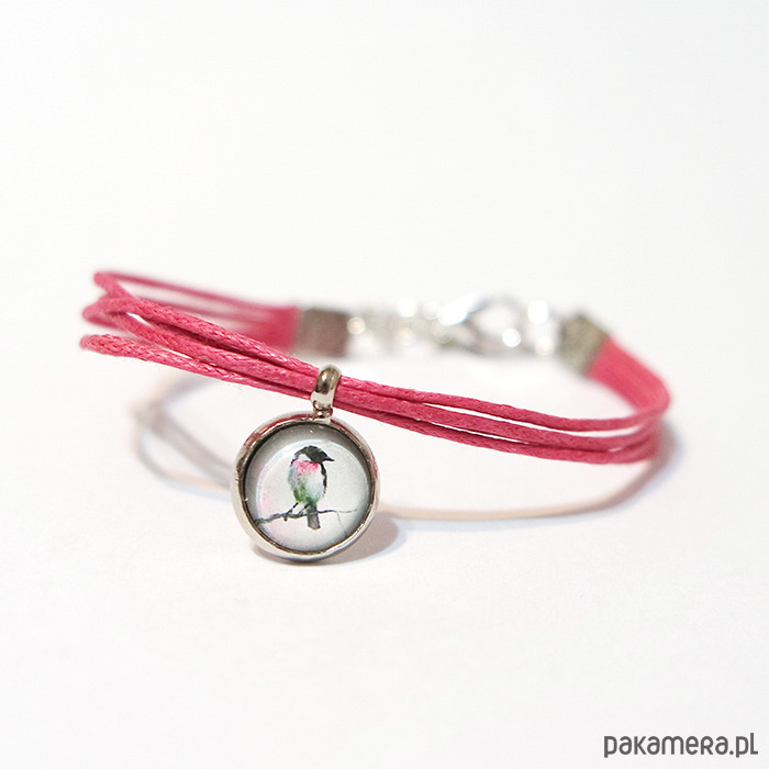 Bransoletka - Ptaszek - sznureczki, różowa