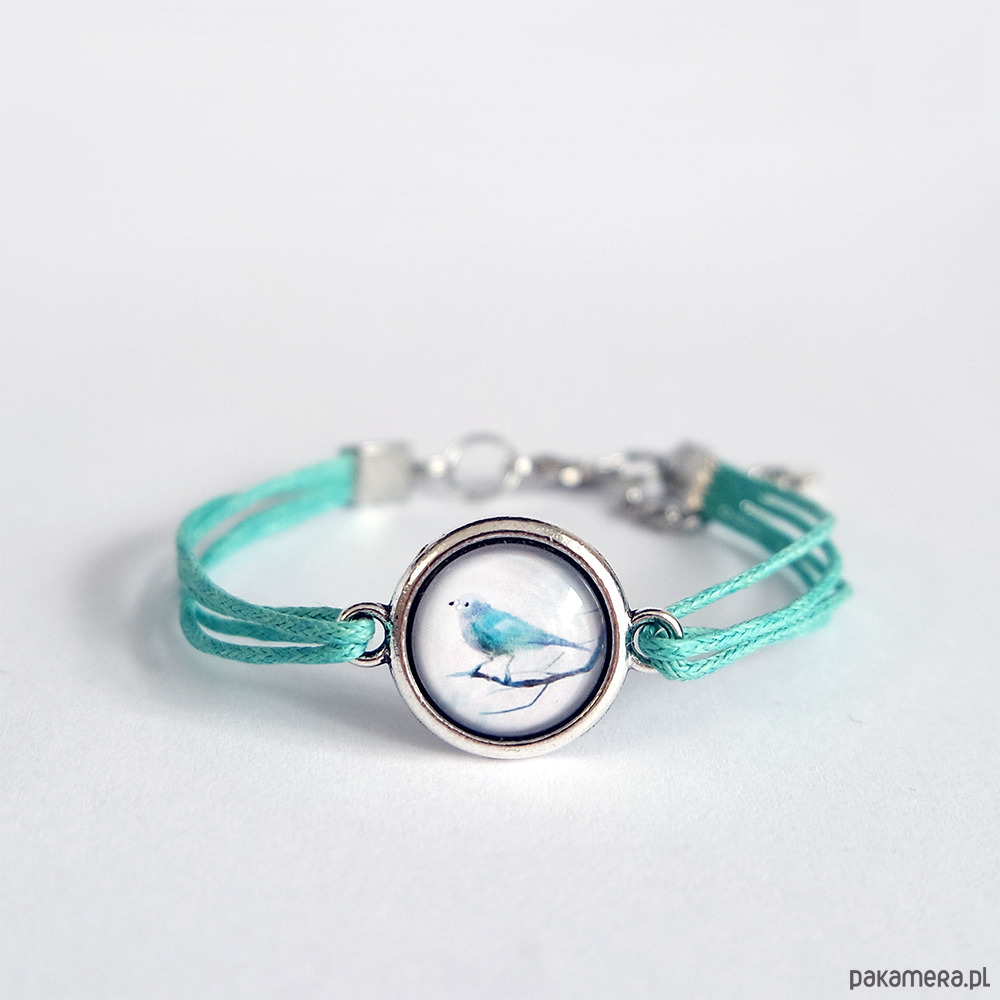 Bransoletka - Ptaszek - turkusowa, sznurki