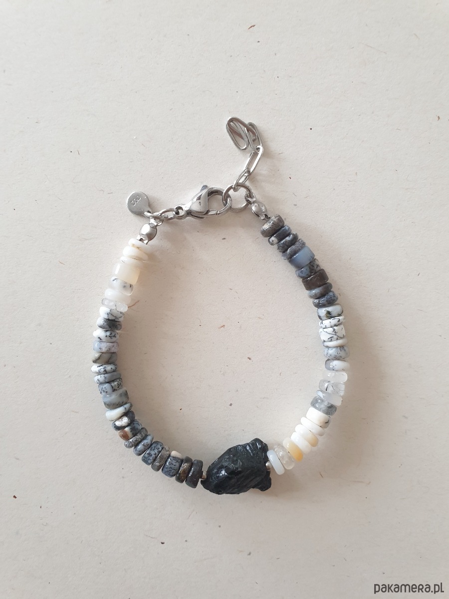 Bransoletka RAW opal dendrytowy, czarny turmalin