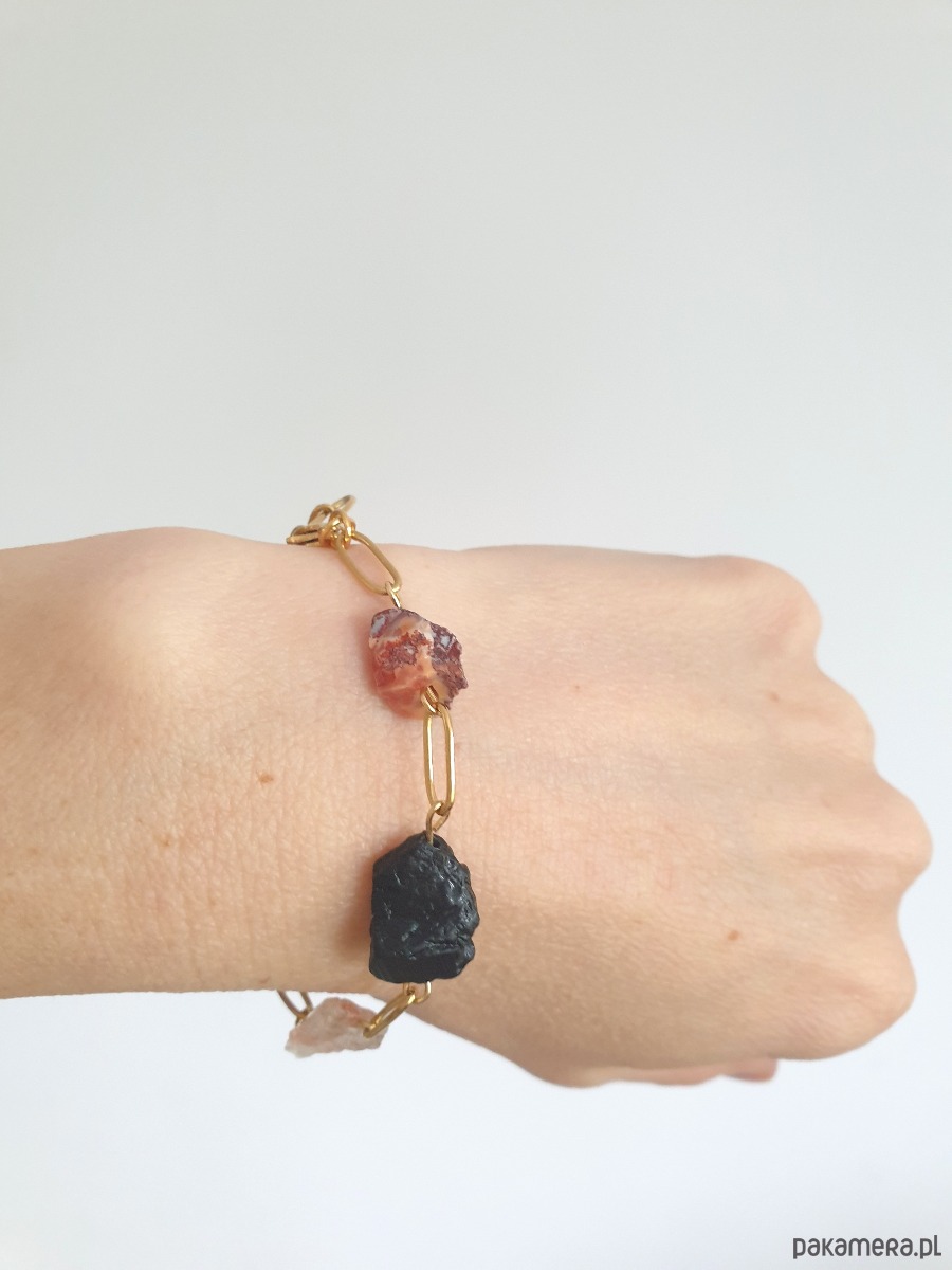 Bransoletka RAW z cienkim łańcuchem, kwarc, opal, czarny turmalin