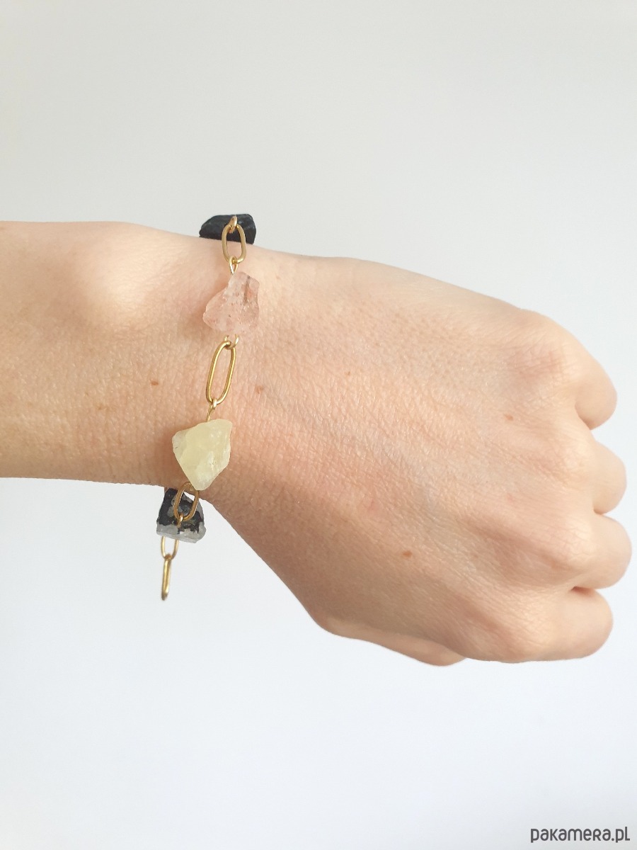 Bransoletka RAW z cienkim łańcuchem, kwarc, opal, czarny turmalin