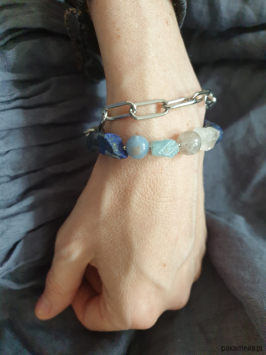 Bransoletka RAW z grubym łańcuchem, kryształ, angelit, lapis lazuli