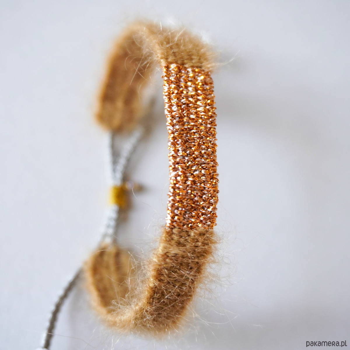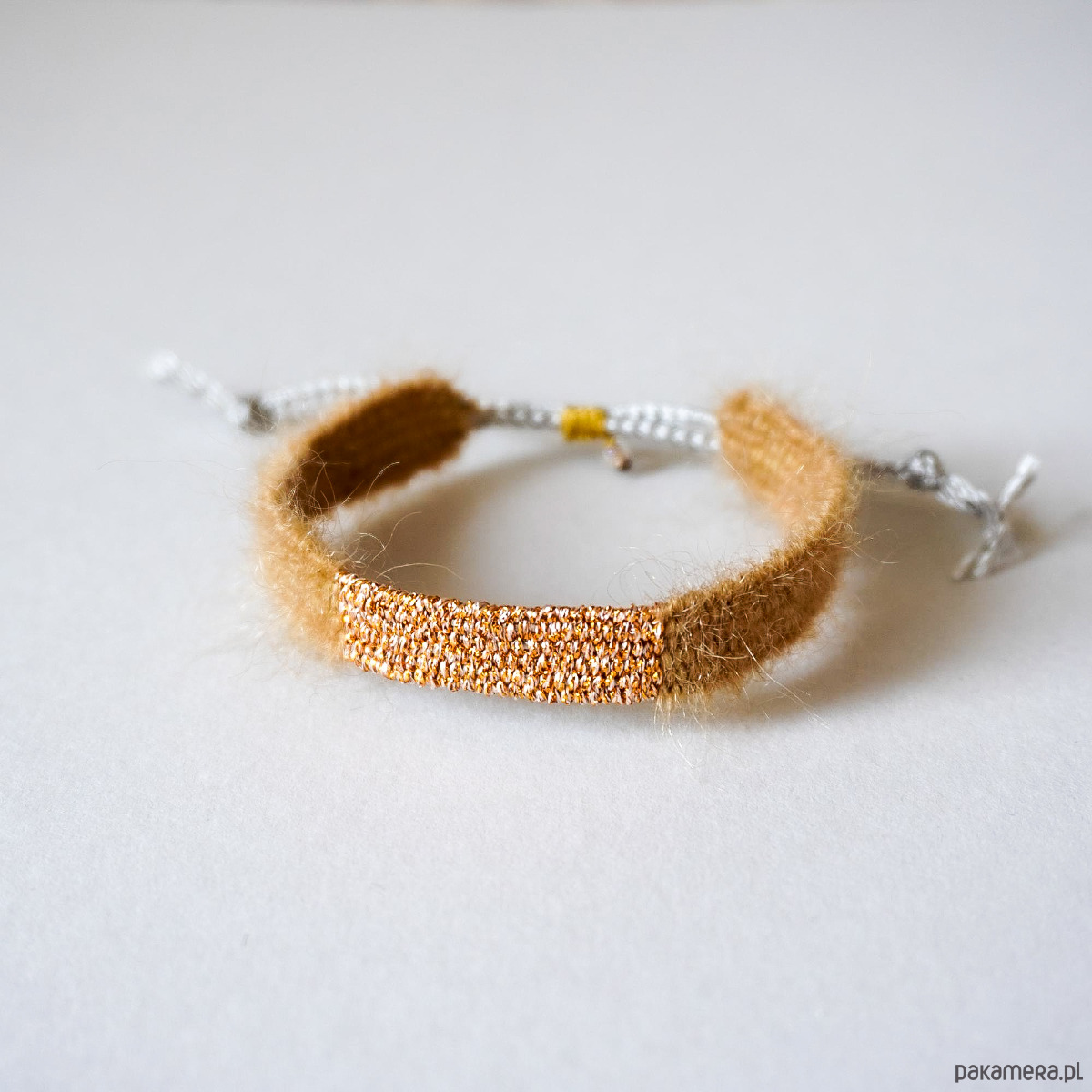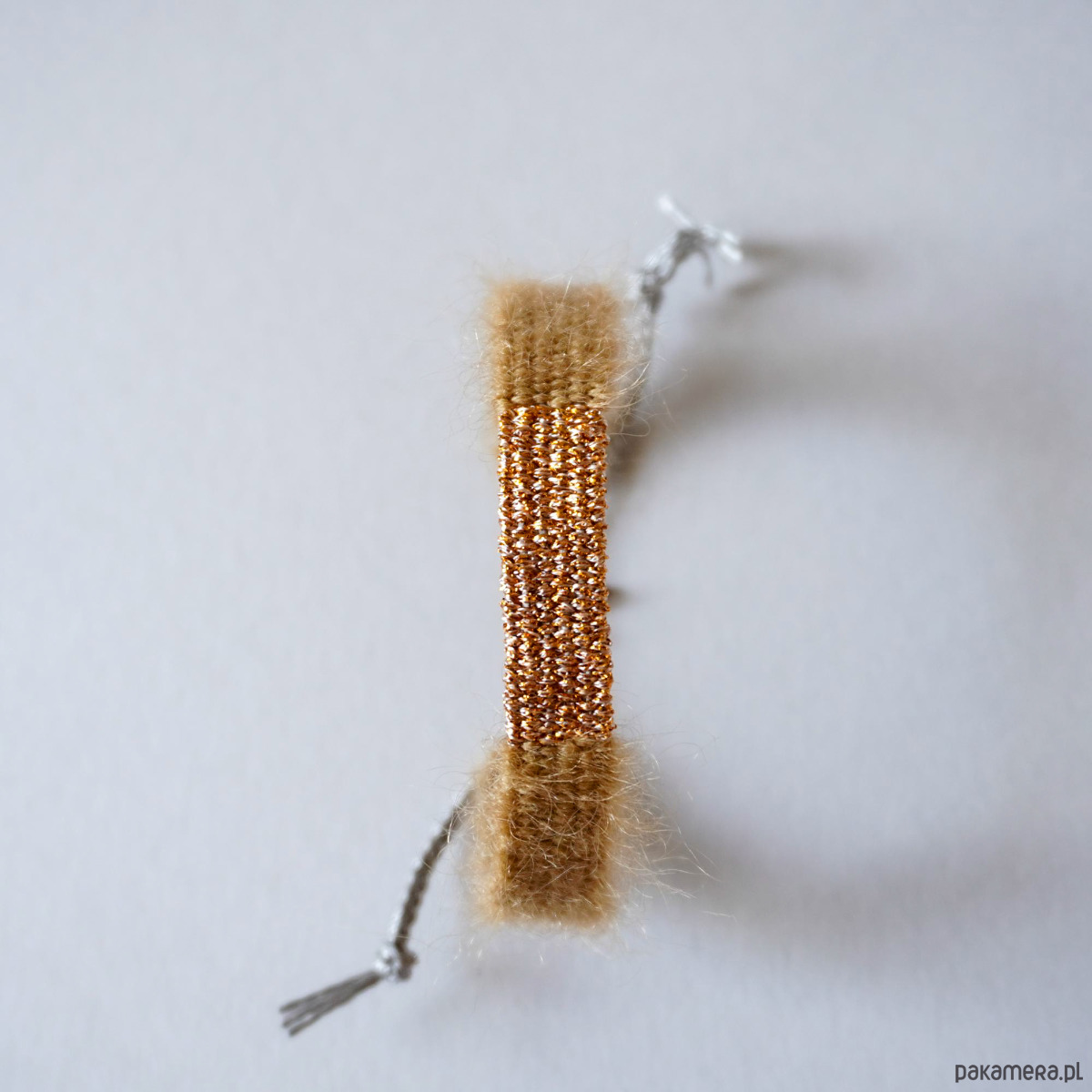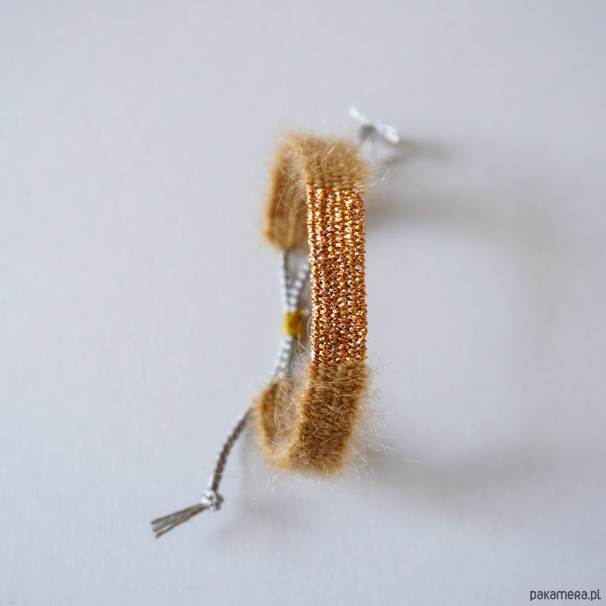 Bransoletka ręcznie tkana w spokojnej, ciepłej kolorystyce z moherem i jedwabiem . Szerokość ok. 1 cm, długość części tkanej około 15 cm. Idealna na prezent ♡. Bransoletka jest nie tylko piękna ale również niezwykle wygodna w noszeniu . Ma regulowane, makramowe zapięcie. Wkładając i zdejmując bransoletkę należy to robić z dużą ostrożnością i absolutnie nie ciągnąć za część tkaną tylko za sznureczki. Polecam serdecznie.