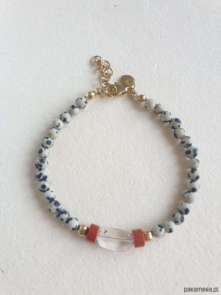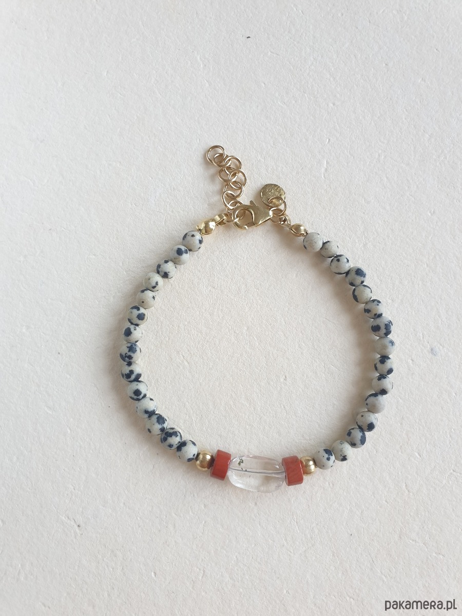 Bransoletka ROOTS jaspis dalmatyński, kryształ górski, jaspis czerwony
