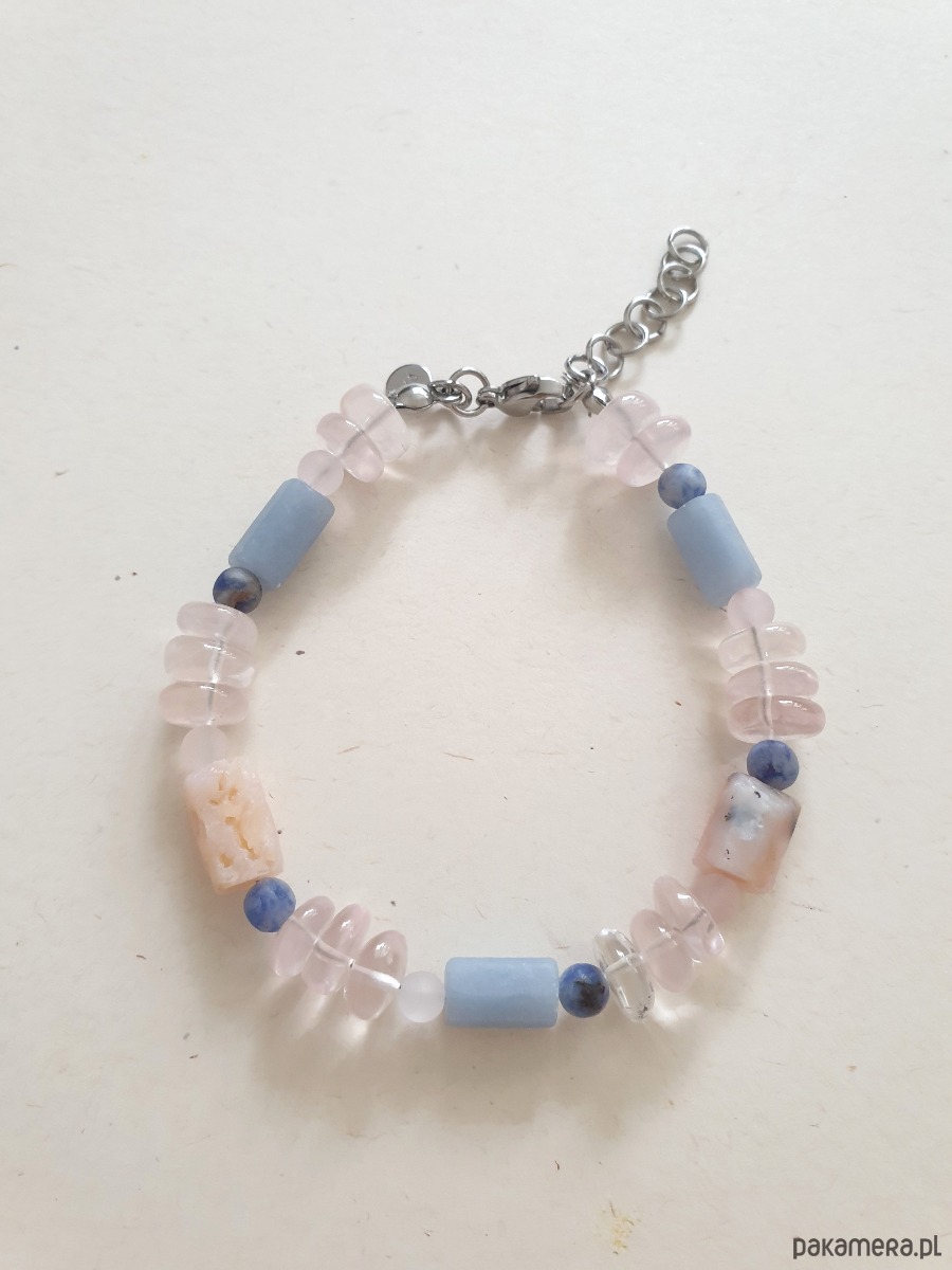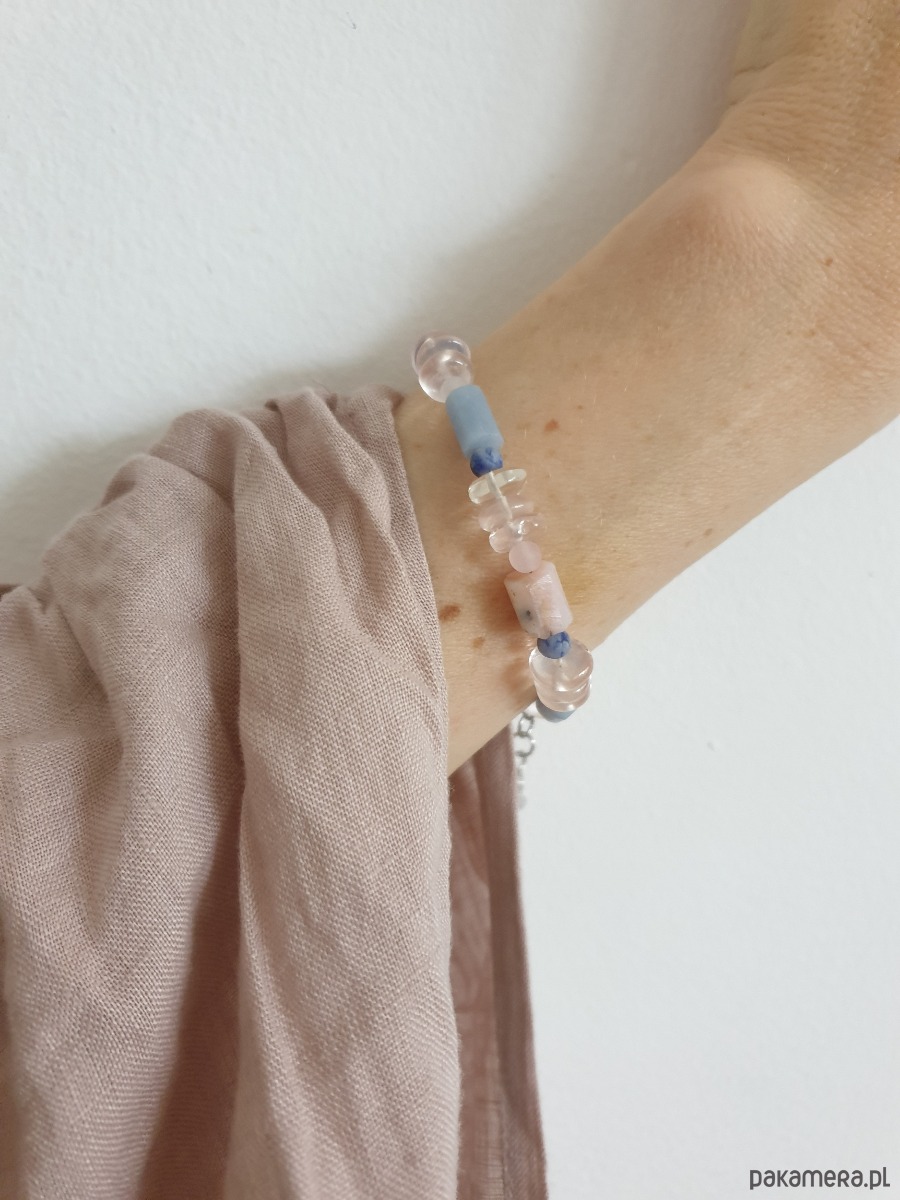 Bransoletka ROOTS kwarc różowy, opal, angelit, sodalit