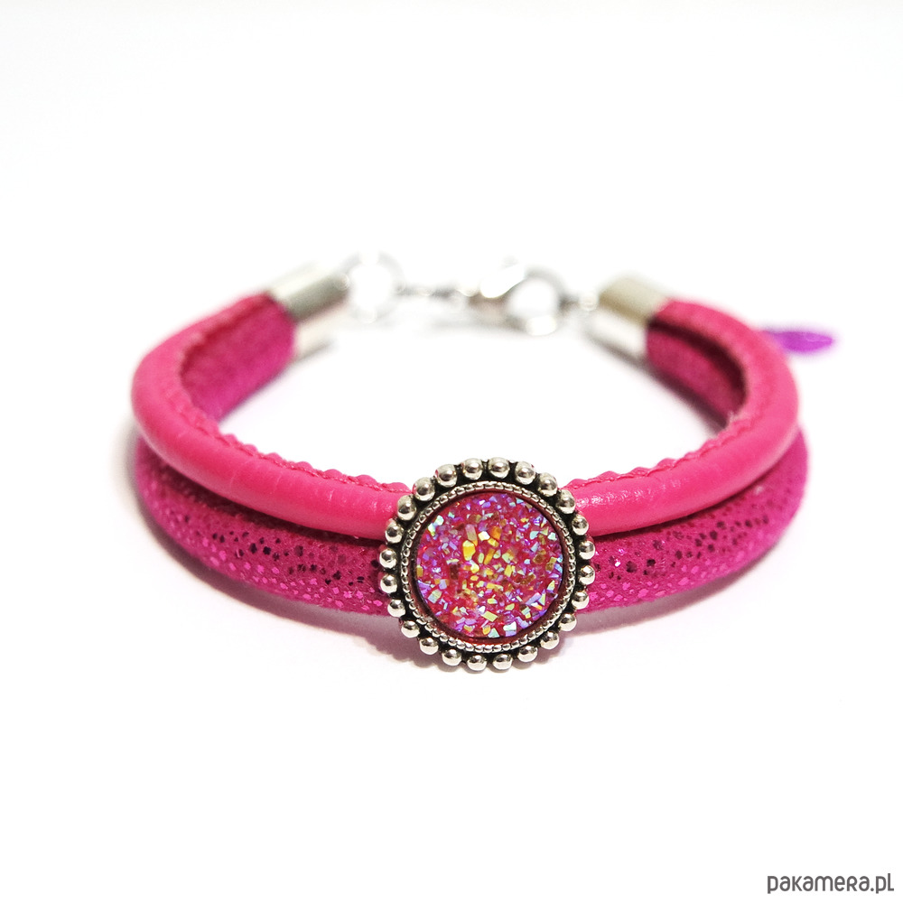 Bransoletka - Róż, amarant, druzy - rzemienie