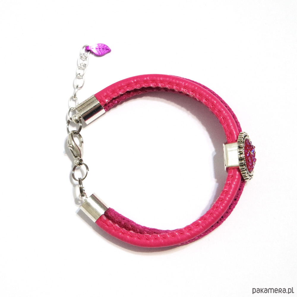 Bransoletka - Róż, amarant, druzy - rzemienie