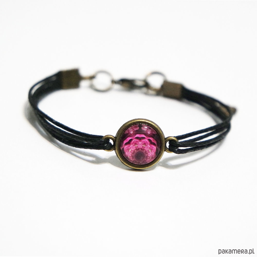 Bransoletka - Różowa koronka - czarna
