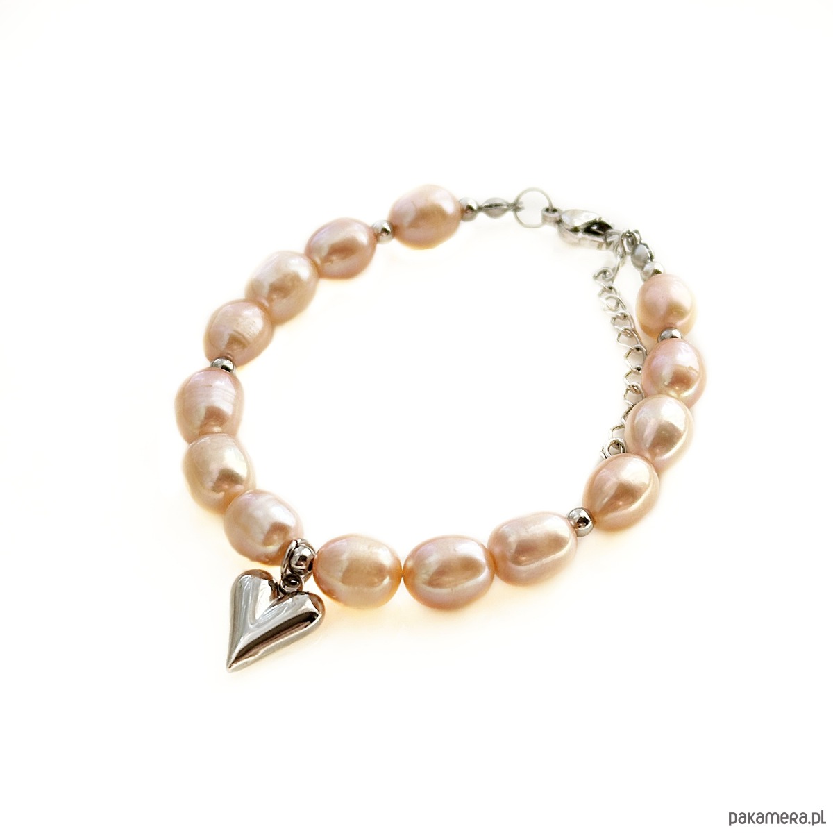 Bransoletka z perłami słodkowodnymi, metalowe elementy są ze stali szlachetnej/chirurgicznej.