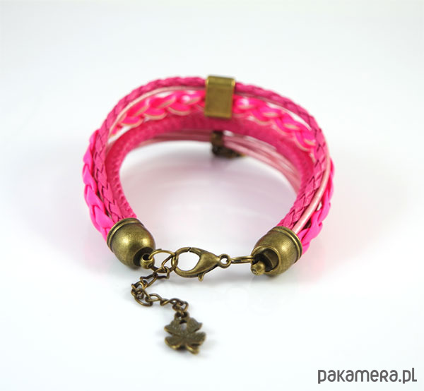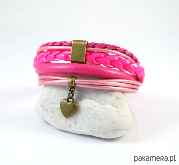 Bransoletka - Różowe serce - rzemienie