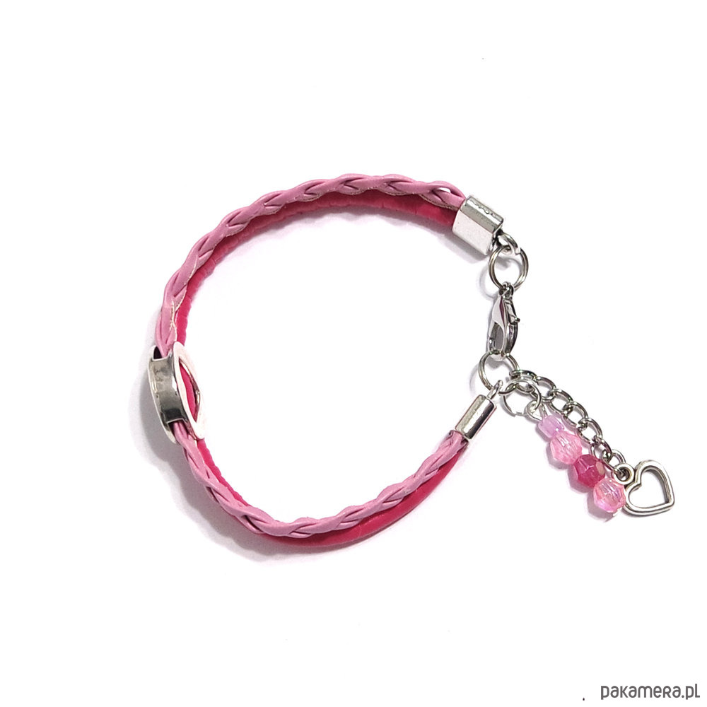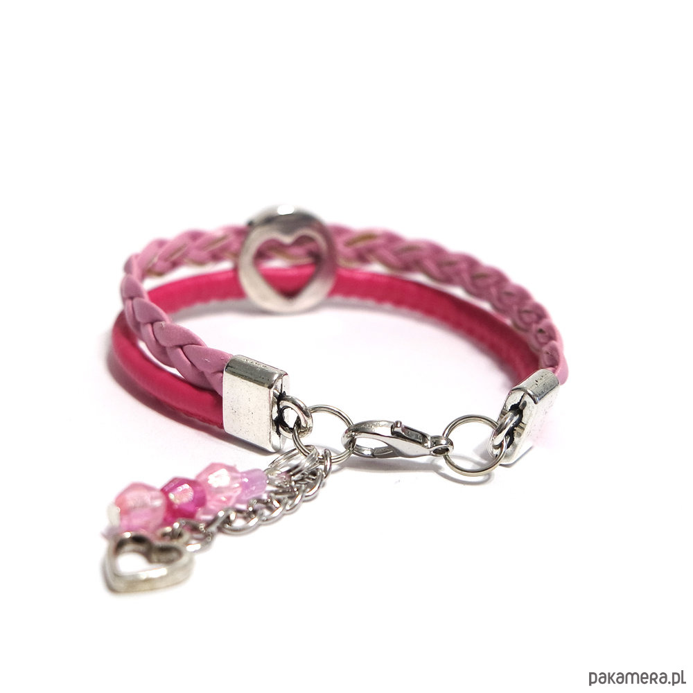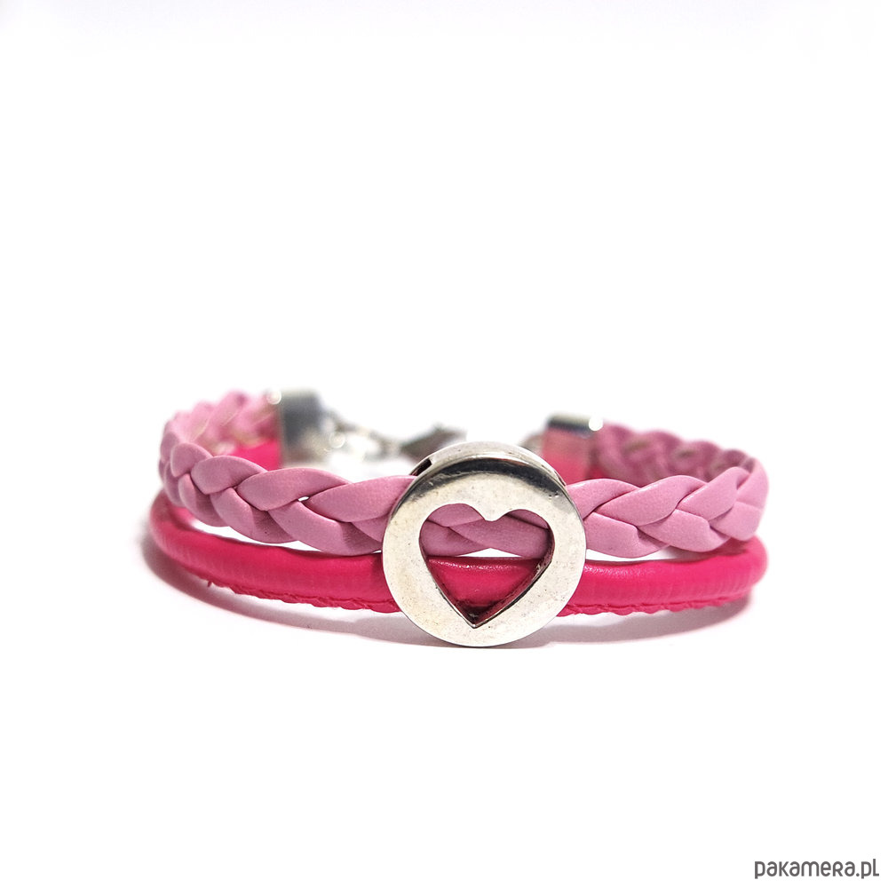 Bransoletka - Różowe serce - rzemienie