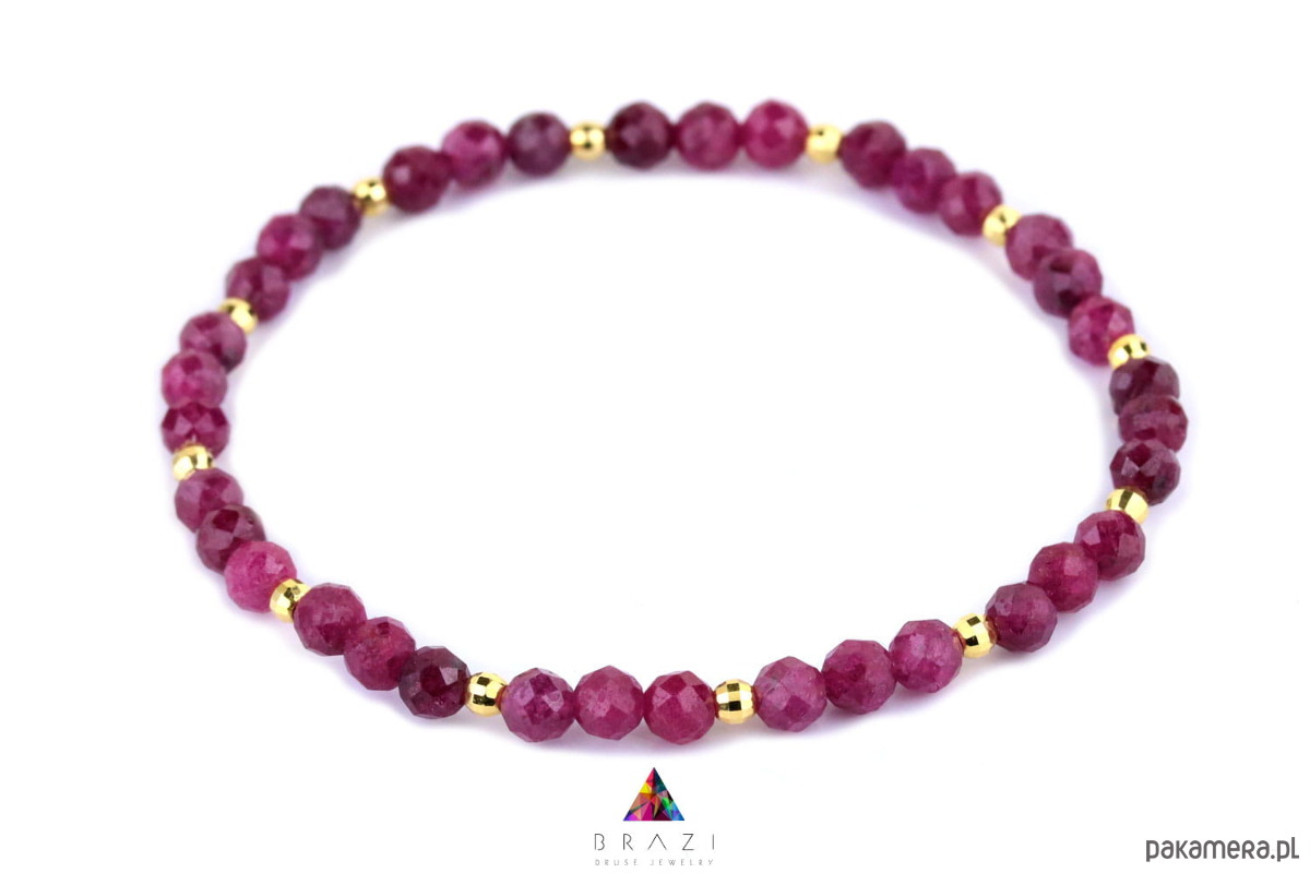 Zanurz się w głębokim, ciemnoróżowym blasku naturalnych rubinów, tworzących tę wyjątkową, ręcznie wykonaną bransoletkę. Fasetowane kulki rubinu o średnicy 4 mm, przeplecione srebrem lub srebrem pozłacanym 24-karatowym złotem, subtelnie połyskują na nadgarstku, dodając elegancji i tajemniczości każdej stylizacji. To biżuteria ręcznie robiona, idealna dla osób ceniących połączenie naturalnego piękna z wyrafinowanym kunsztem.