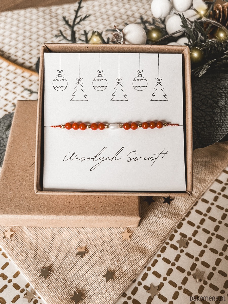 Bransoletka Santa koral i perła prezent na Święta