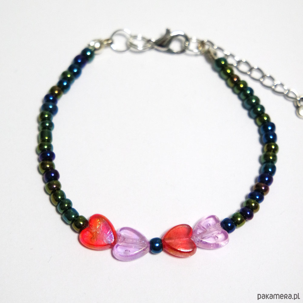 Oryginalna bransoletka z przekładkami w kształcie serduszek.