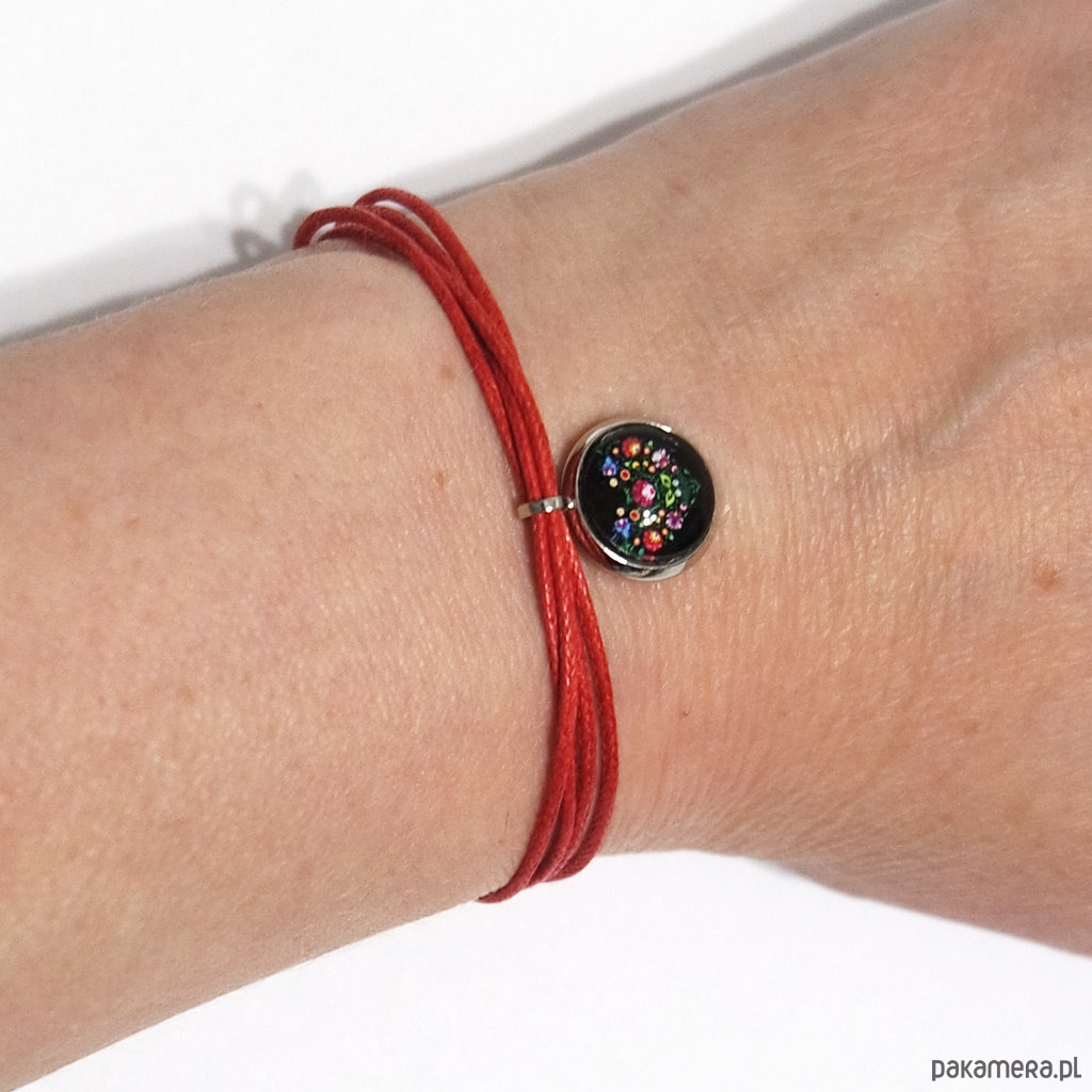 Bransoletka - Serce folk czarne - sznureczki, czerwona