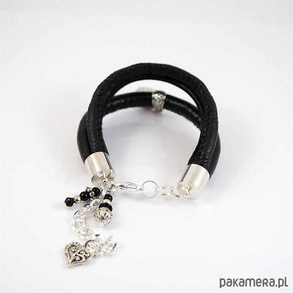 Bransoletka zrobiona jest z rzemieni z eko-skóry i skóry naturalnej.