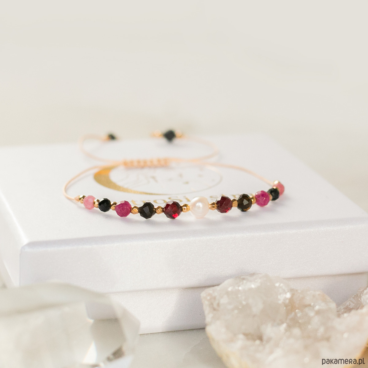 KAMIENIE: Perła, Granat, Obsydian, Rubin, Turmalin czarny i różowy.