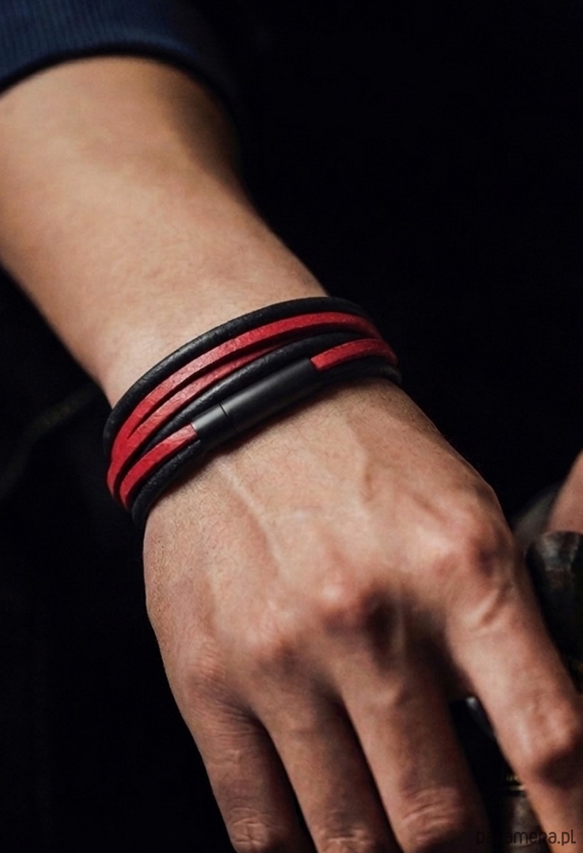 Nowość, modna bransoleta męska wykonana z wysokogatunkowego rzemienia ze skóry naturalnej owijana dwukrotnie wokół nadgarstka. Bransoleta jest w stylu minimalistycznym. Wyjątkowa i jedyna w swoim rodzaju.
