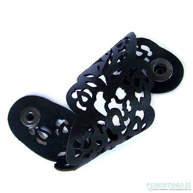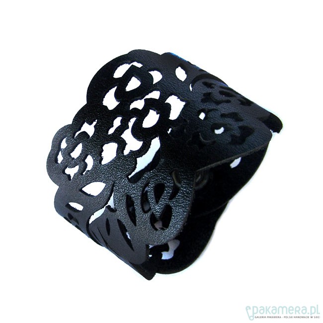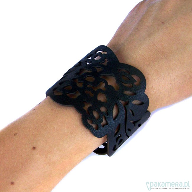 Bransoletka wycięta laserowo w skórze naturalnej. Wzór mojego projektu.