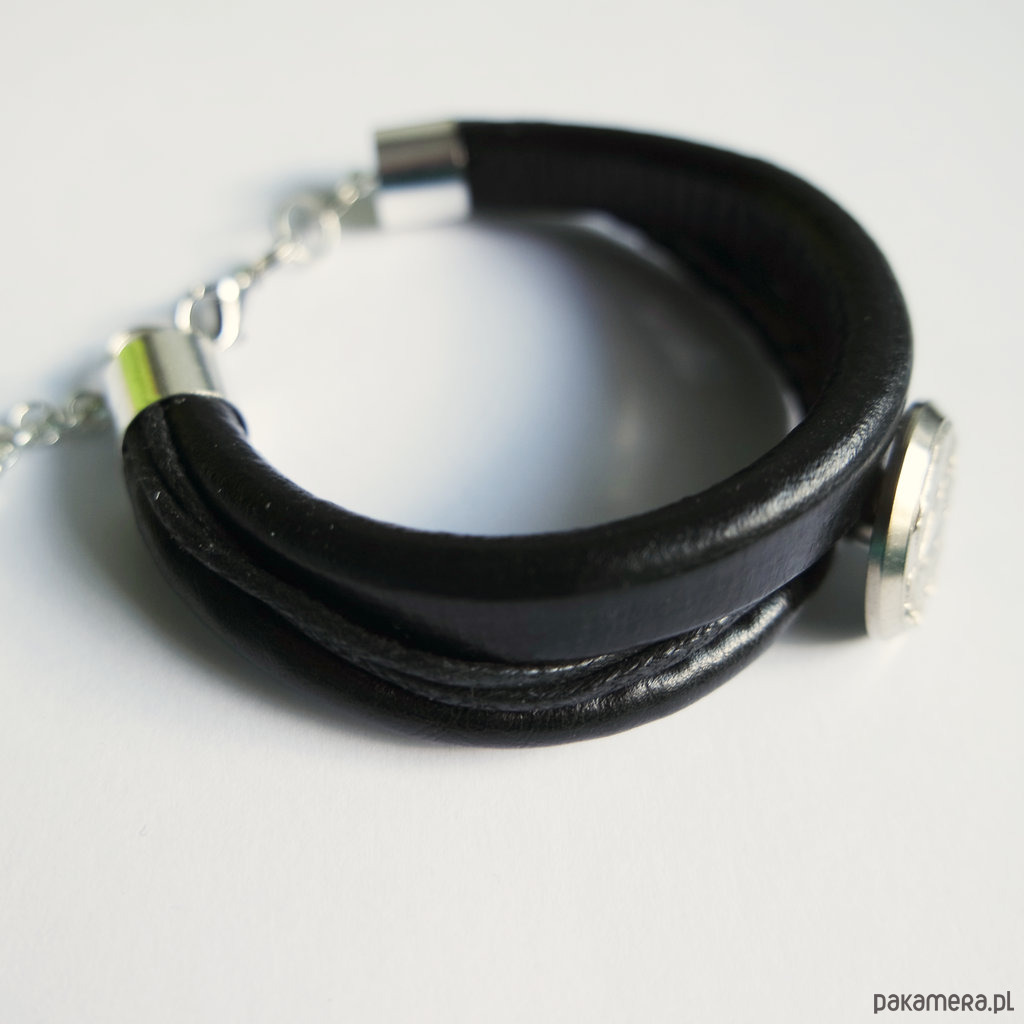 Bransoletka wykonana jest ze skóry naturalnej, ekoskóry i sznurka oraz ozdobnego guzika.