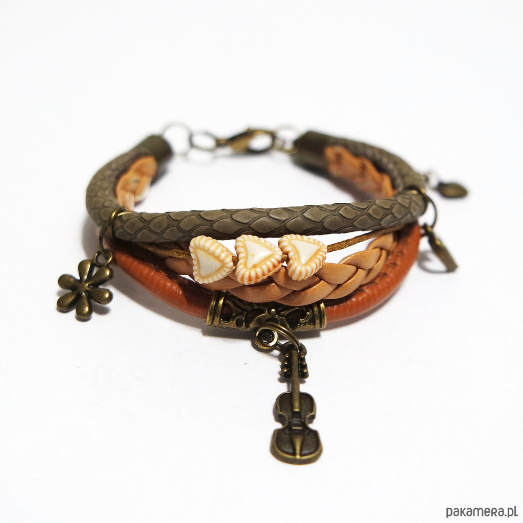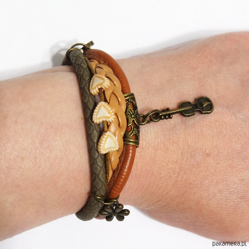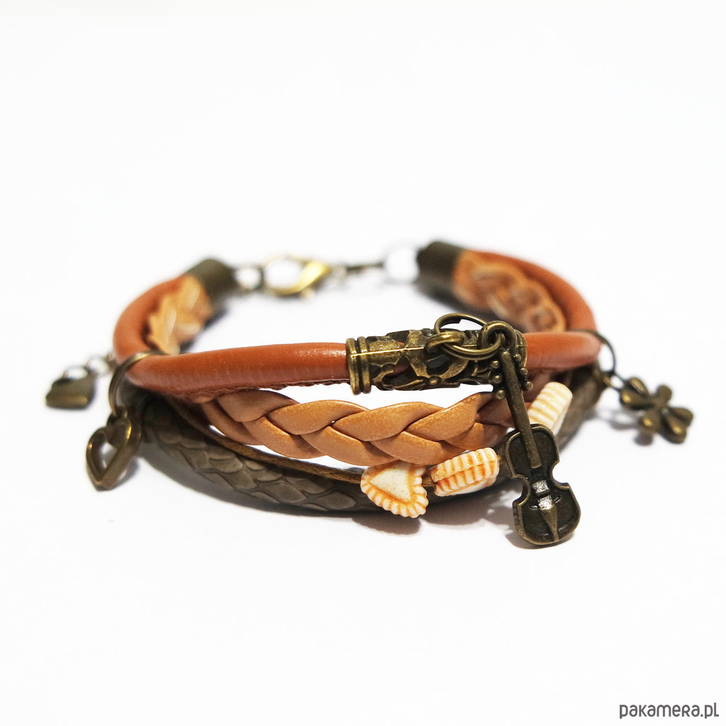 Bransoletka - Skrzypce, karmelowa - rzemienie