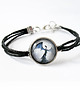 Grafika ukryta w delikatnej bransoletce pod osłoną przeźroczystego półokrągłego szkiełka.