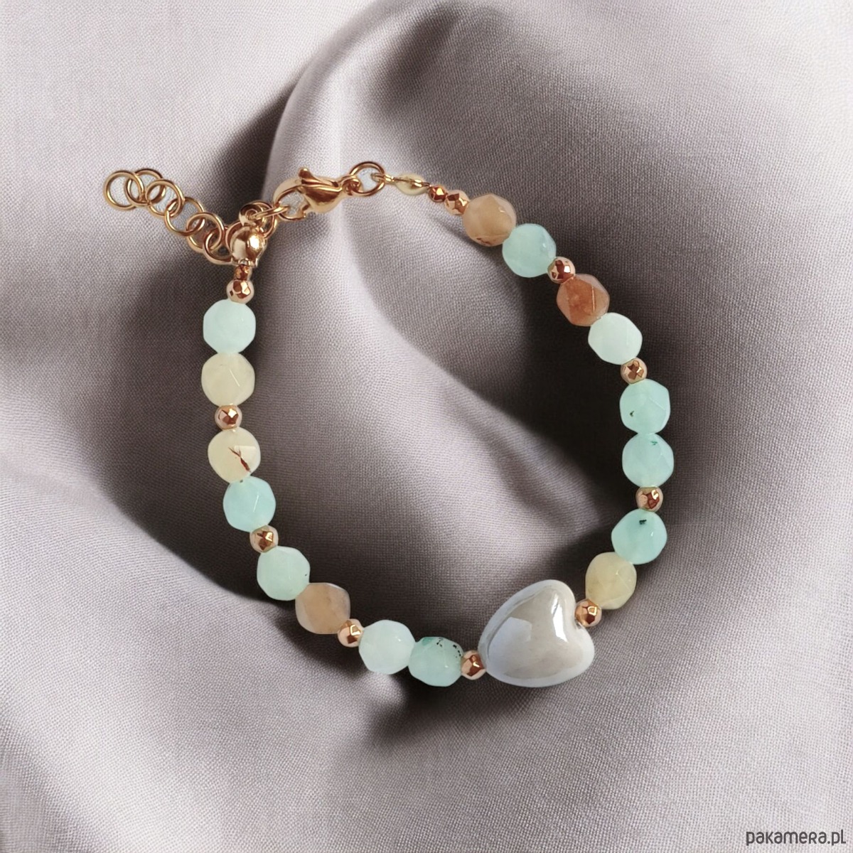 Bransoletka : SPRING collection: JADEIT i ceramiczne serduszko