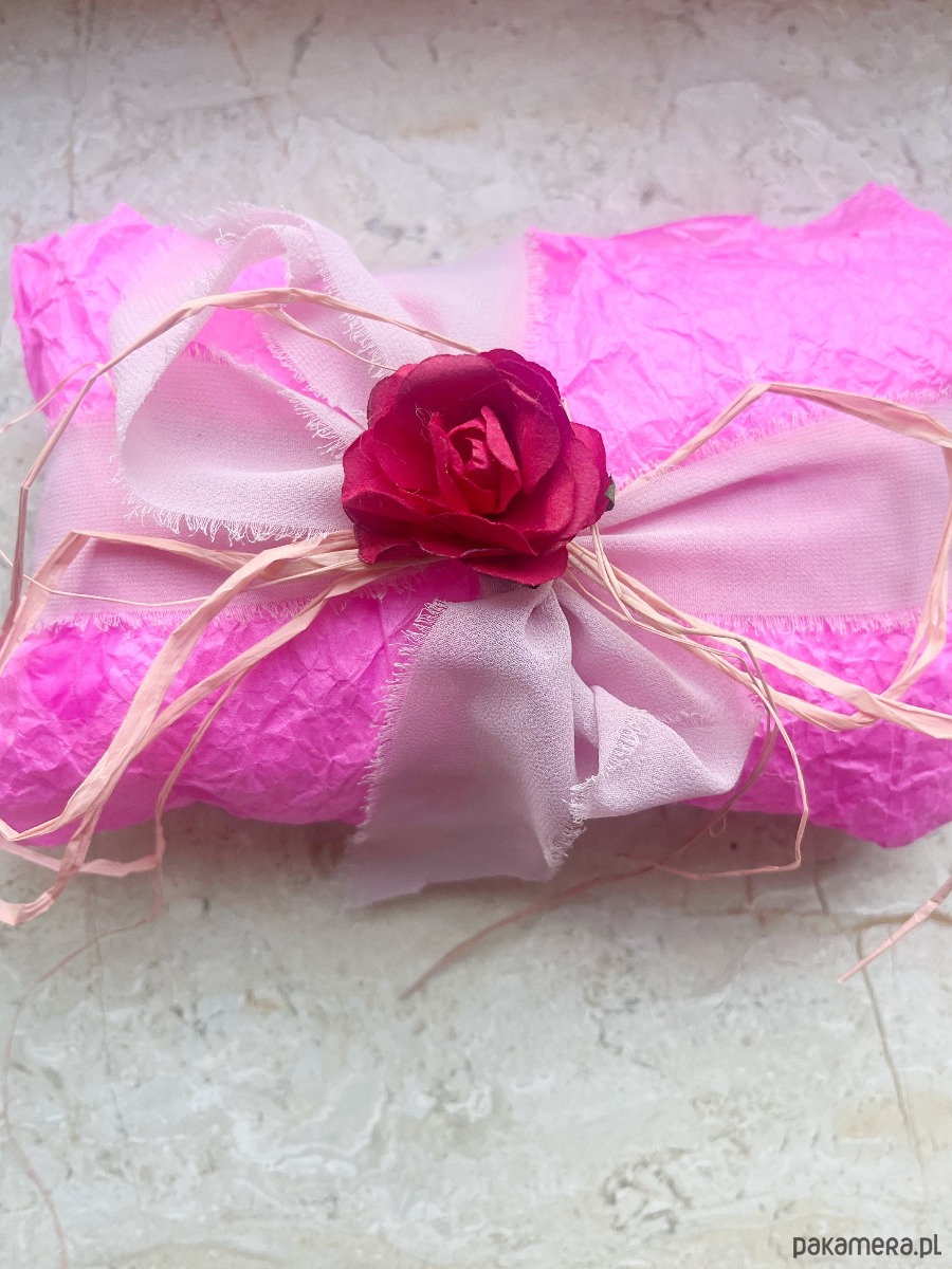 W centrum kompozycji znajduje się urocza kokardka, nadająca całości dziewczęcego, biżuteryjnego charakteru.