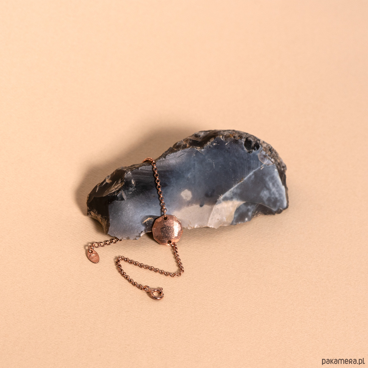 Klasyczna srebrna bransoletka Medalion wykonana ze srebra próby 925 w surowym wykończeniu. Pokryta jest różowym złoceniem o grubości 2 mikronów oraz zabezpieczona nanopowłoką.