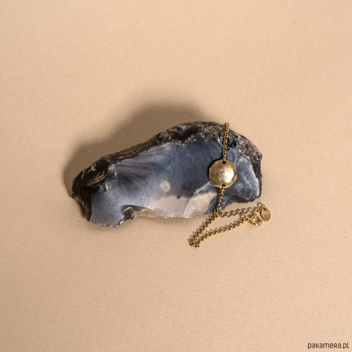 Klasyczna srebrna bransoletka Medalion wykonana ze srebra próby 925 w surowym wykończeniu. Pokryta jest żółtym złoceniem o grubości 2 mikronów oraz zabezpieczona nanopowłoką.