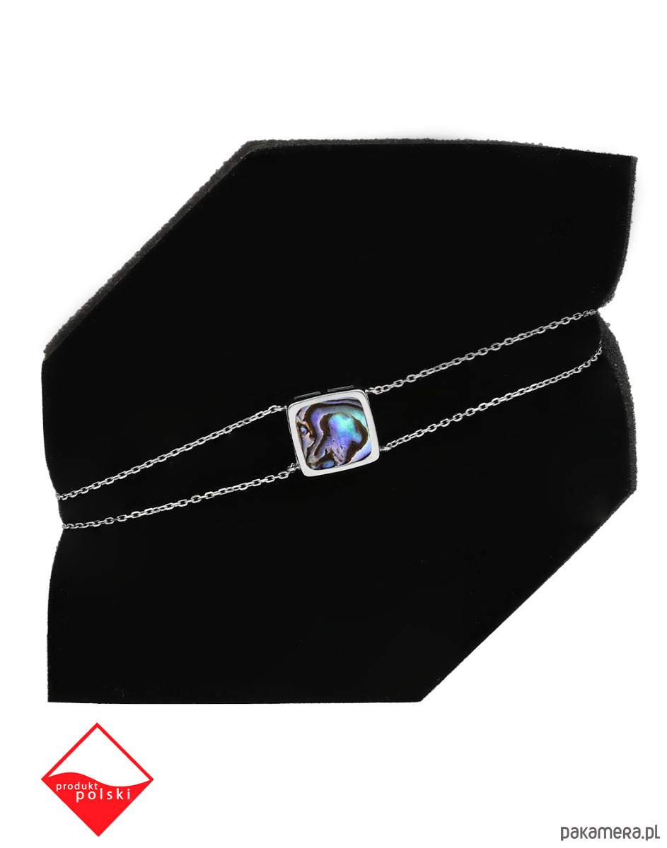 Bransoletka srebrna podwójna z masą perłową-kwadrat